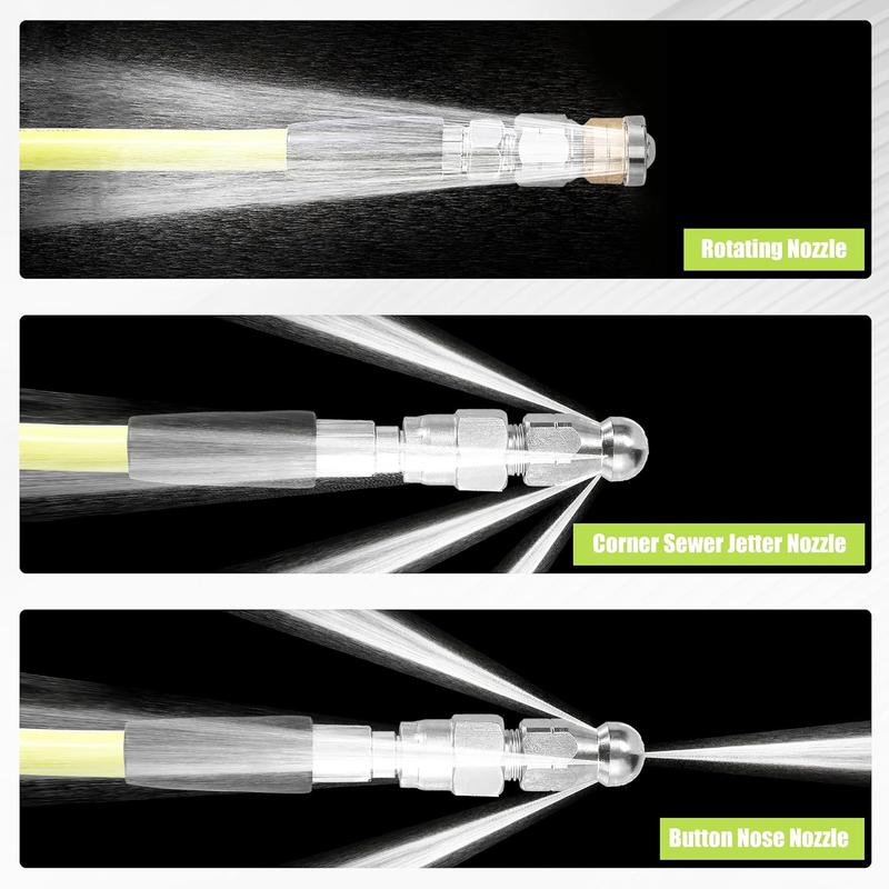 Made from high-quality materials, this drain cleaner boasts a working pressure of 3600PSI, burst pressure of 8000PSI, and a max temperature tolerance of 140℉. It ensures stable performance and reliable safety. Trust in its durability for all your cleaning tasks.