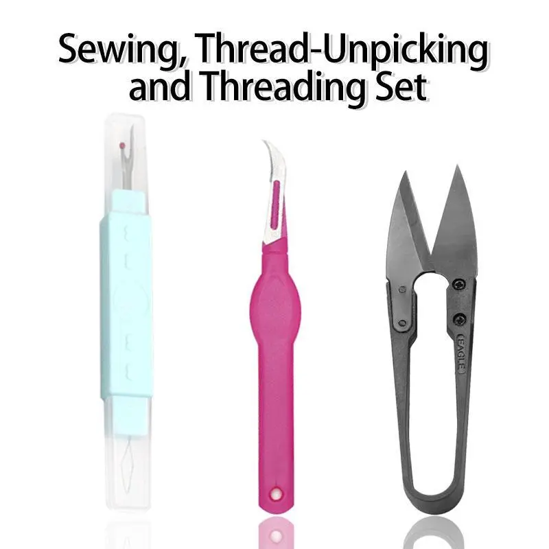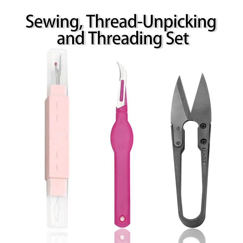The kit includes a needle and thread, allowing for easy and efficient sewing. The Needle Threader saves time and effort by threading needles effectively. The Seam Ripper enhances the quality of finished products with precision. It can also be used to open buttonholes.