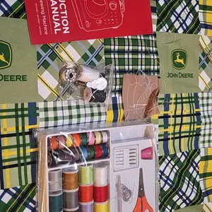 Includes: Sewing machine, foot pedal, power cord, 16 spools, 16 bobbins, 5 spare machine needles, 1 needle threader, 1 scissor, 1 measuring tape, 1 seem ripper, 1 thimble