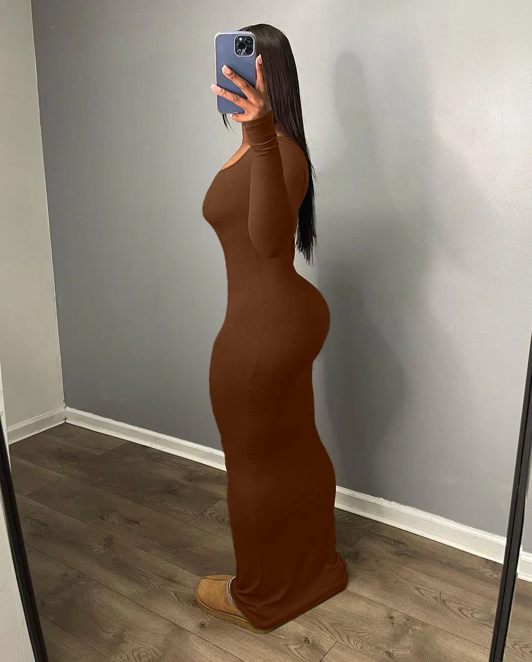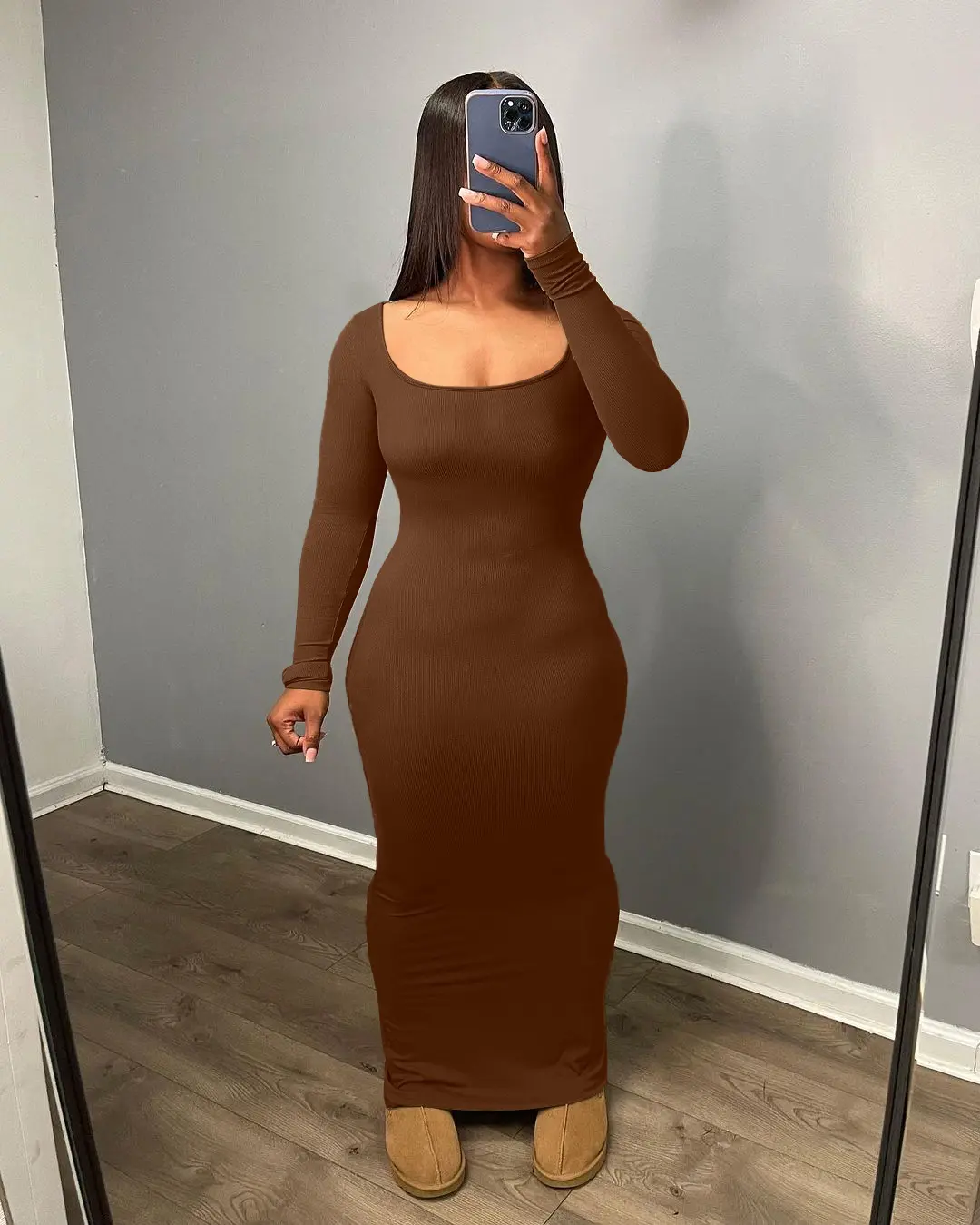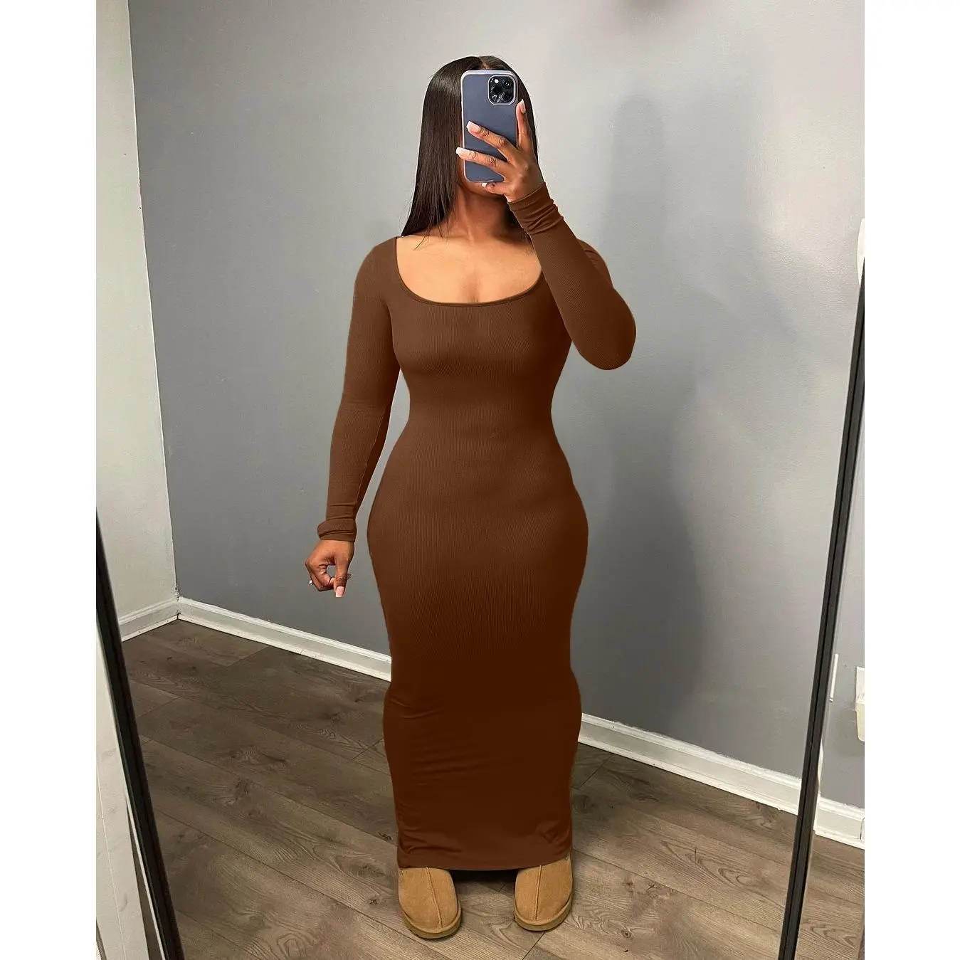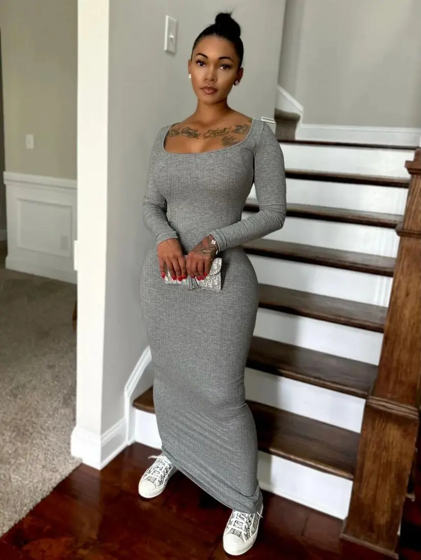 ·Basic fall winter design,ankle length,bod ycon maxi dress is designed to accentuate your silhouette,make more curvy with hips.