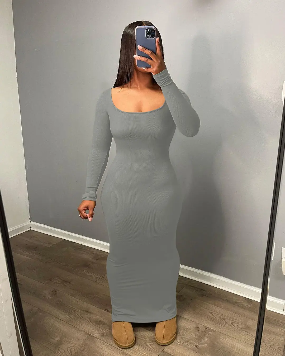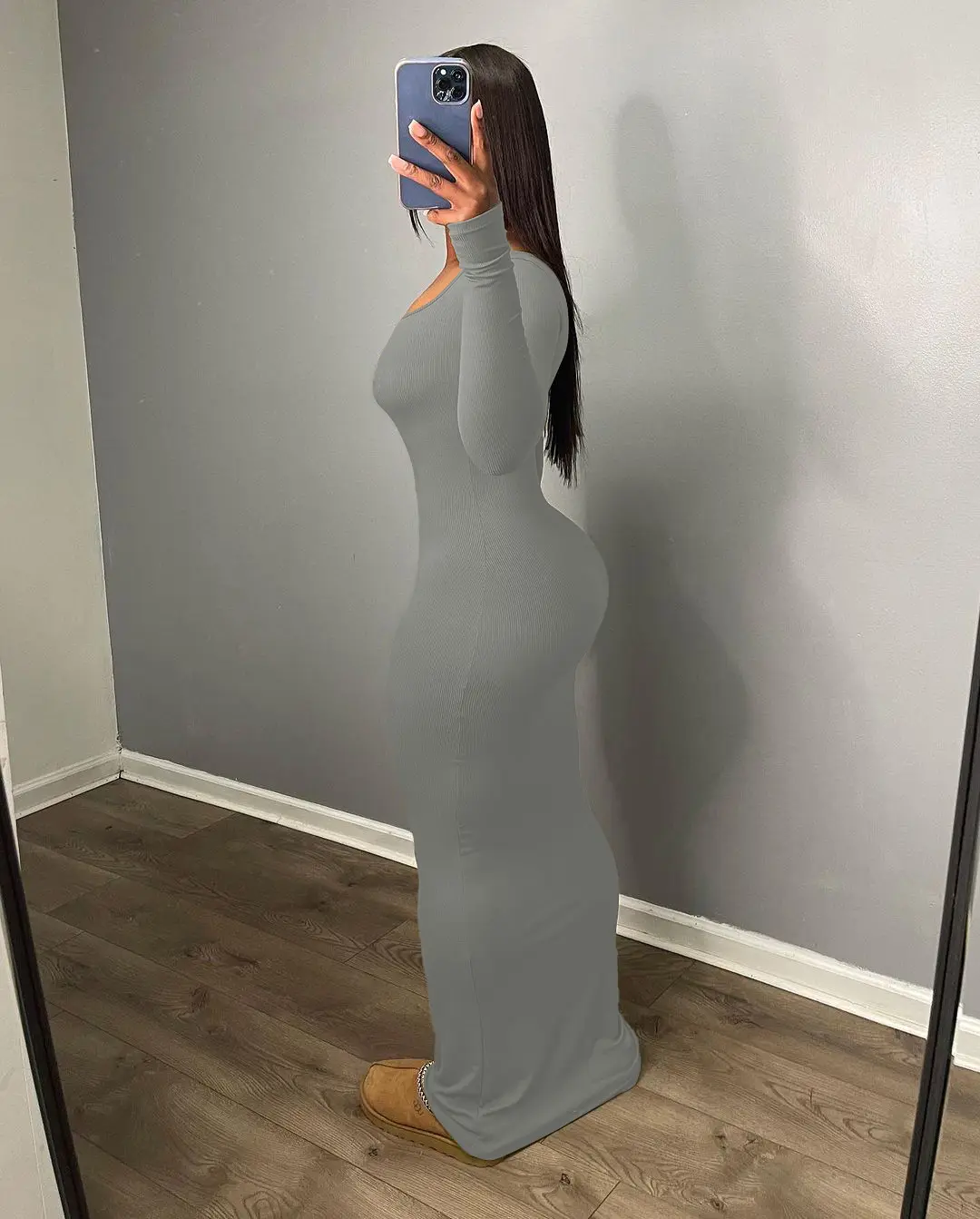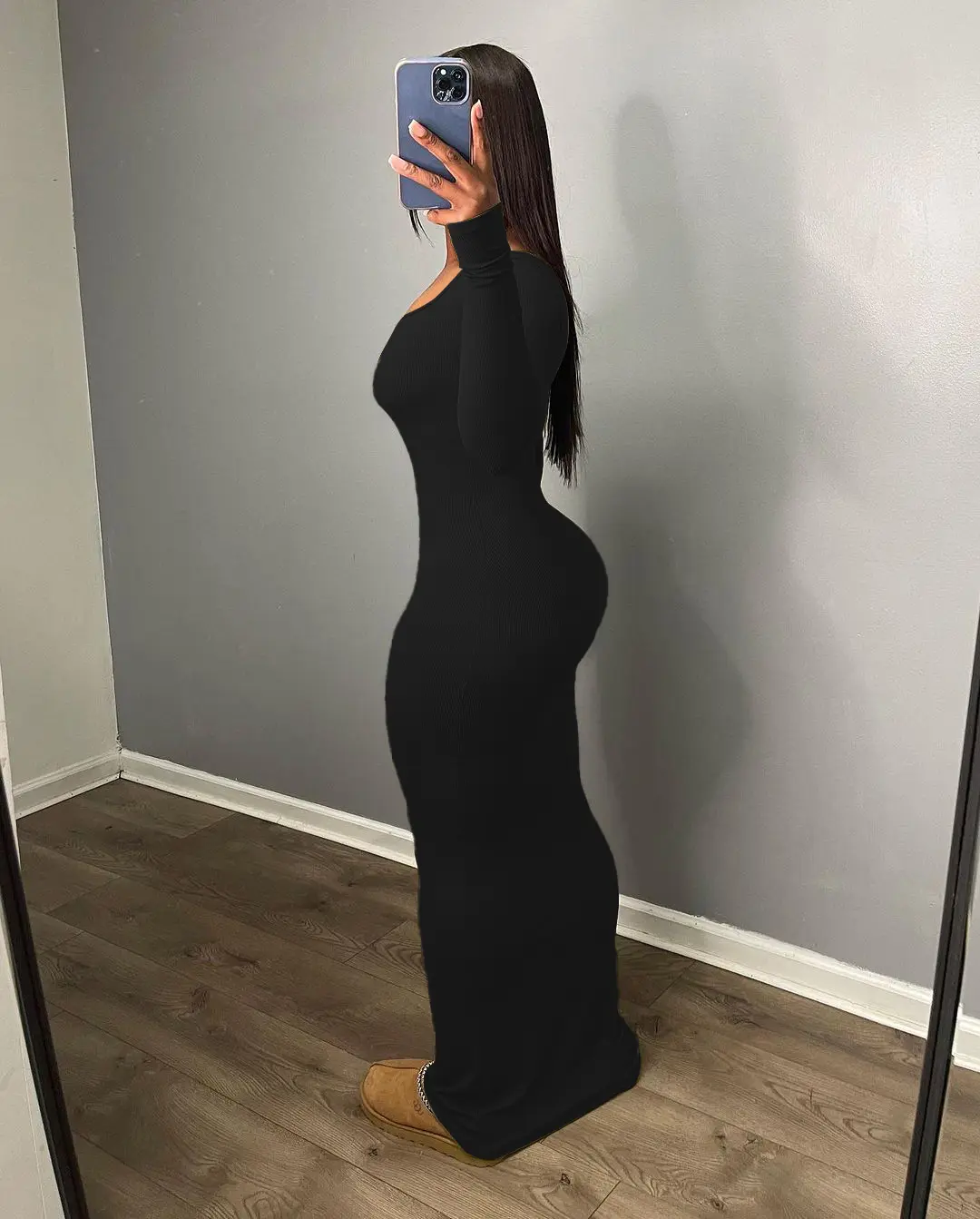 ·Basic fall winter design,ankle length,bod ycon maxi dress is designed to accentuate your silhouette,make more curvy with hips.