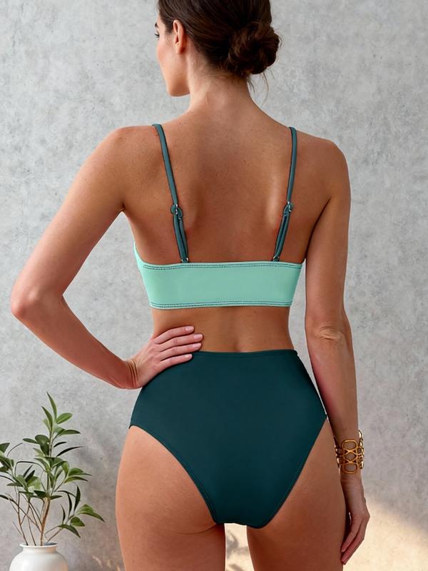 Sexy Emerald & Mint Green Bikini - Twist Front High-Waisted Slim-Fitting, Forestcore Beach Vacation Swimwear