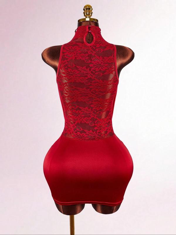 Sexy Lace Backless Cut Out Short Dress, Elegant Summer Fashion, Perfect for Parties and Events, Women's Casual Wear, Ball Party Dress