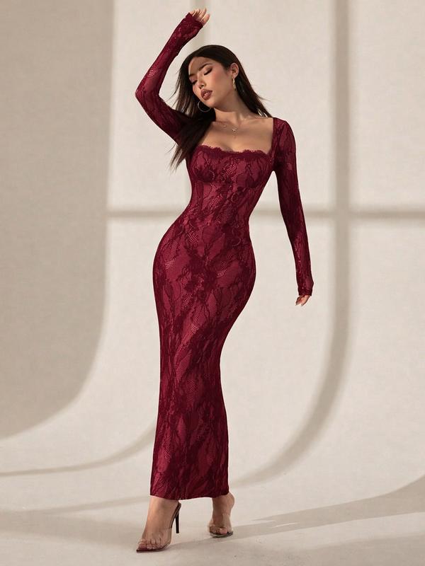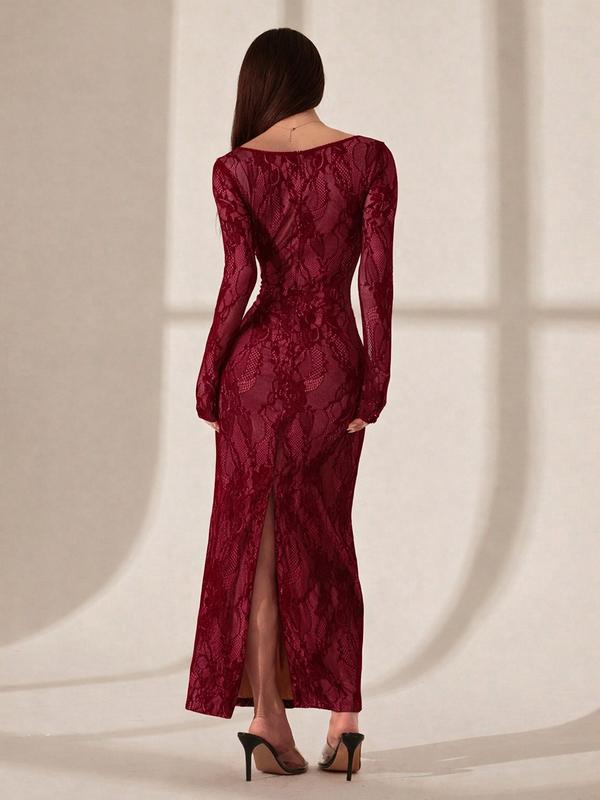 Sexy Lace Dress in Burgundy with Back Slit – Breathable #dress #longdress #sexy #bodycondress #spotlightfinds