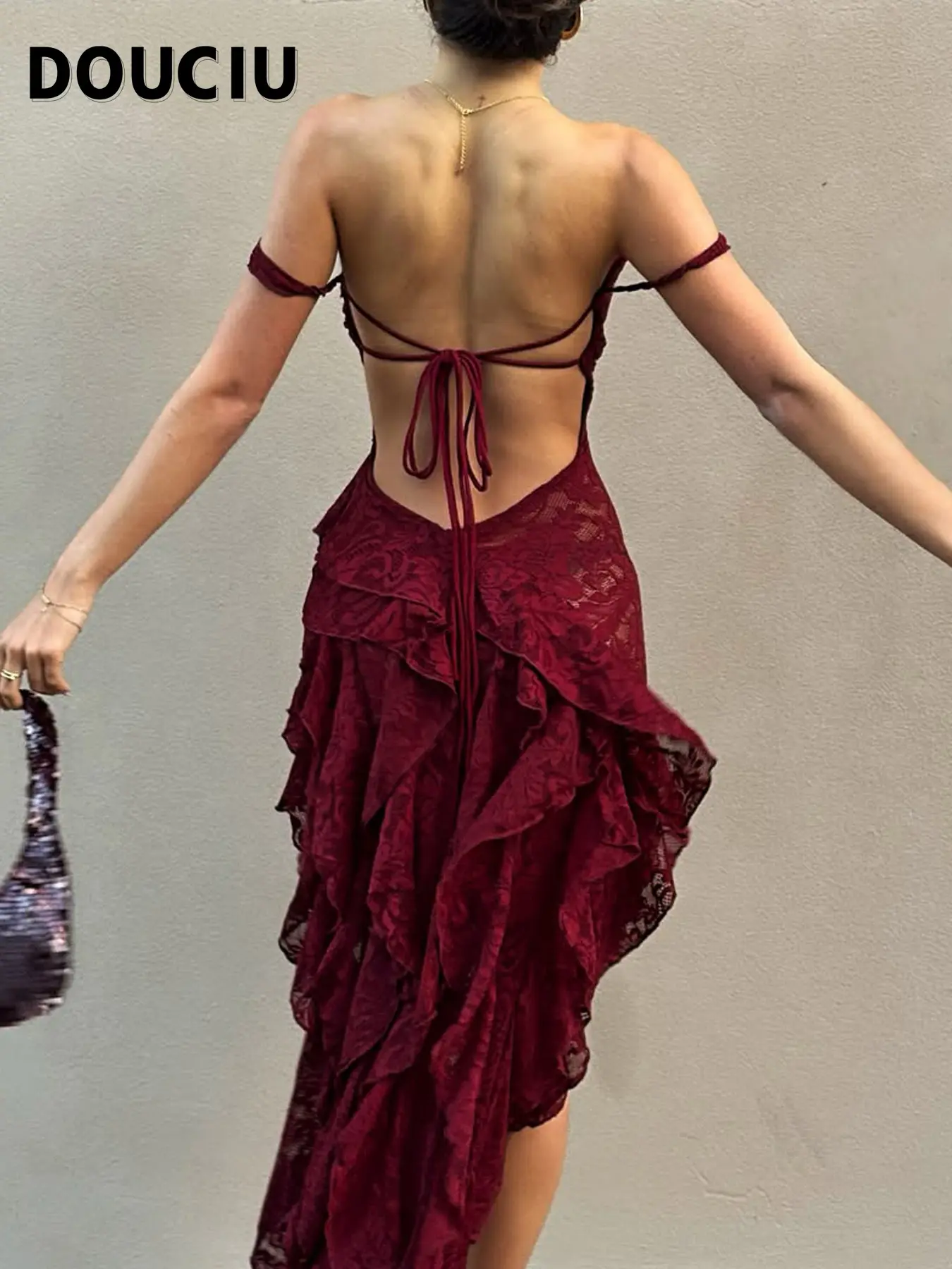 DOUCIU Party Sexy Mature Beautiful Individual Women'S Thin See Though Solid Color Lace One-Shoulder Long Bevel Hem Dress Ball Gown #TikTokShopBlackFriday #TikTokShopCyberMonday #spotlightfinds #ootd/  #clothing