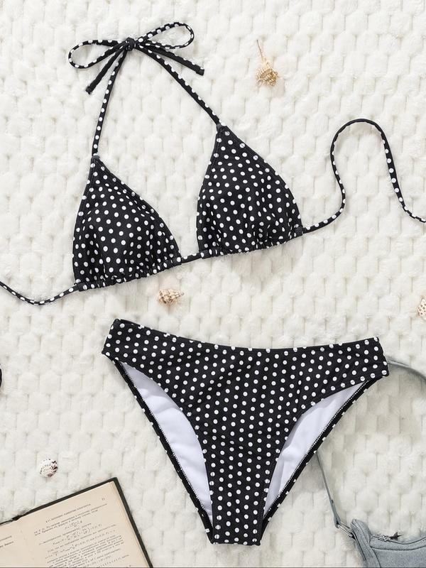 Sexy Polka Dot High Cut Bikini Set, Summer Beachwear for Young Women, Casual Knitted Halter Two-Piece Swimsuit for All Seasons.