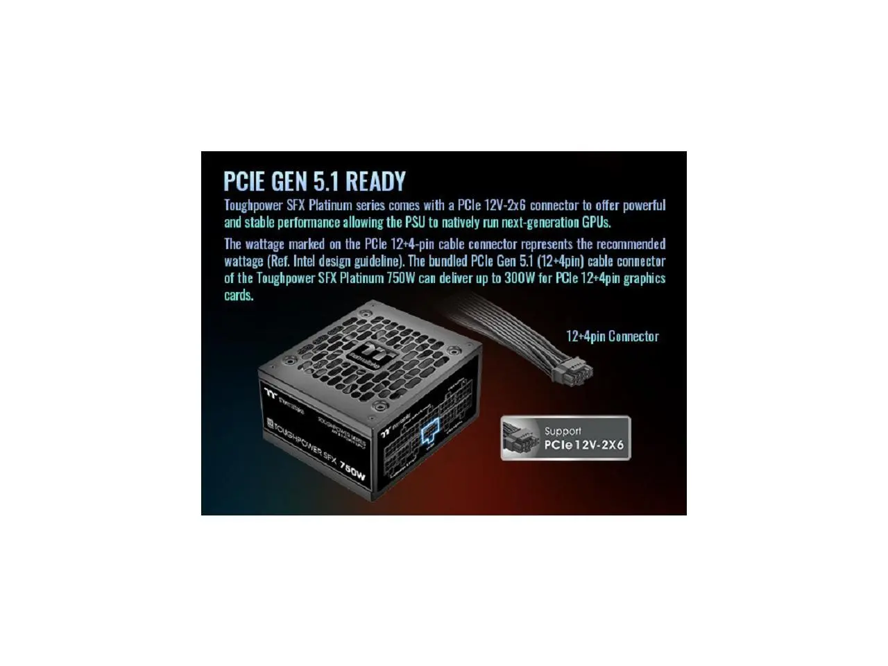 5. Thermaltake Toughpower SFX 750W 80Plus Platinum ATX 3.1 300W 12V-2x6 Connector Included; Full Modular; 90mm Fan; PS-STP-0750FNFAPU-1; 7 Year Warranty