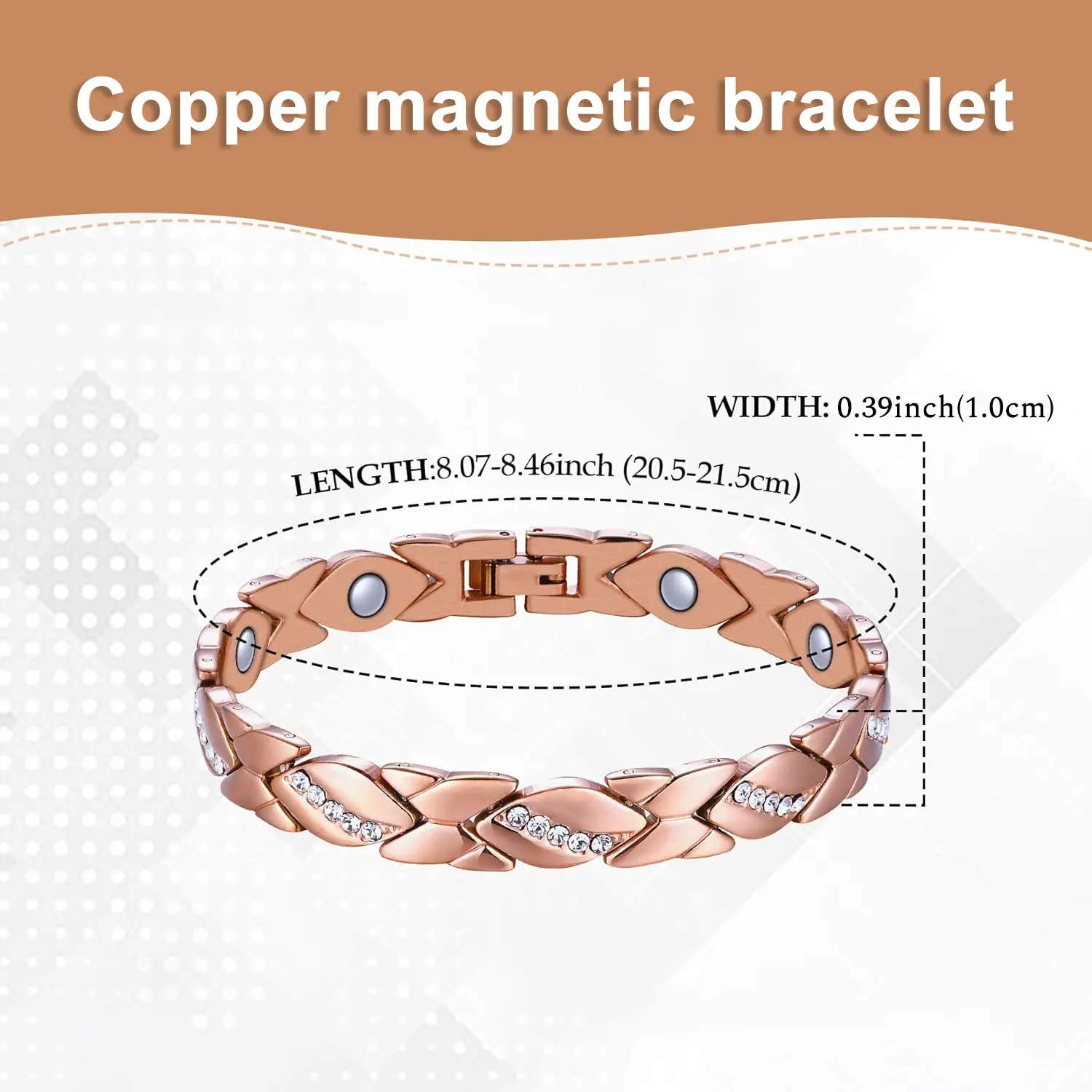 COPPER MAGNETIC BRACELETS:HYPOALLERGENIC, LEAD & NICKEL FREE, Made of Solid Copper and Top Techniques that create, long lasting lacquer coating to avoid oxidation, scratches resistant.