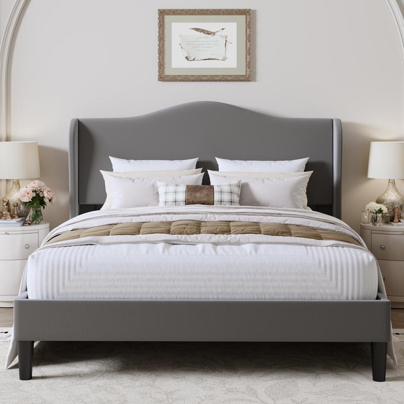 ·Curved Wingback Headboard: Adds an elegant style to your bedroom.