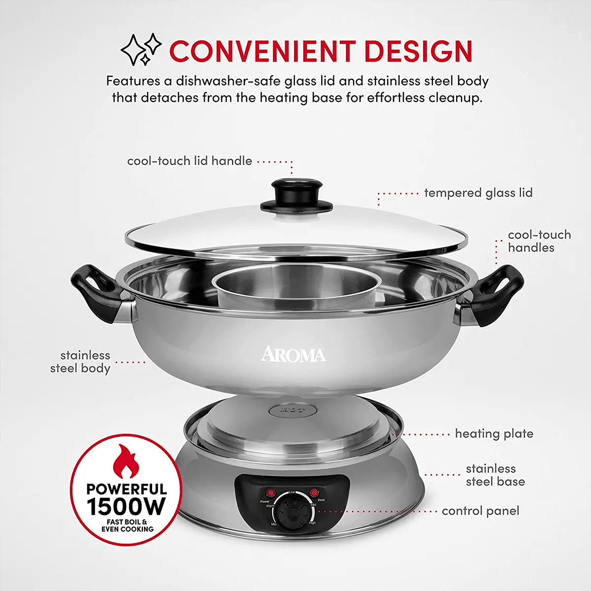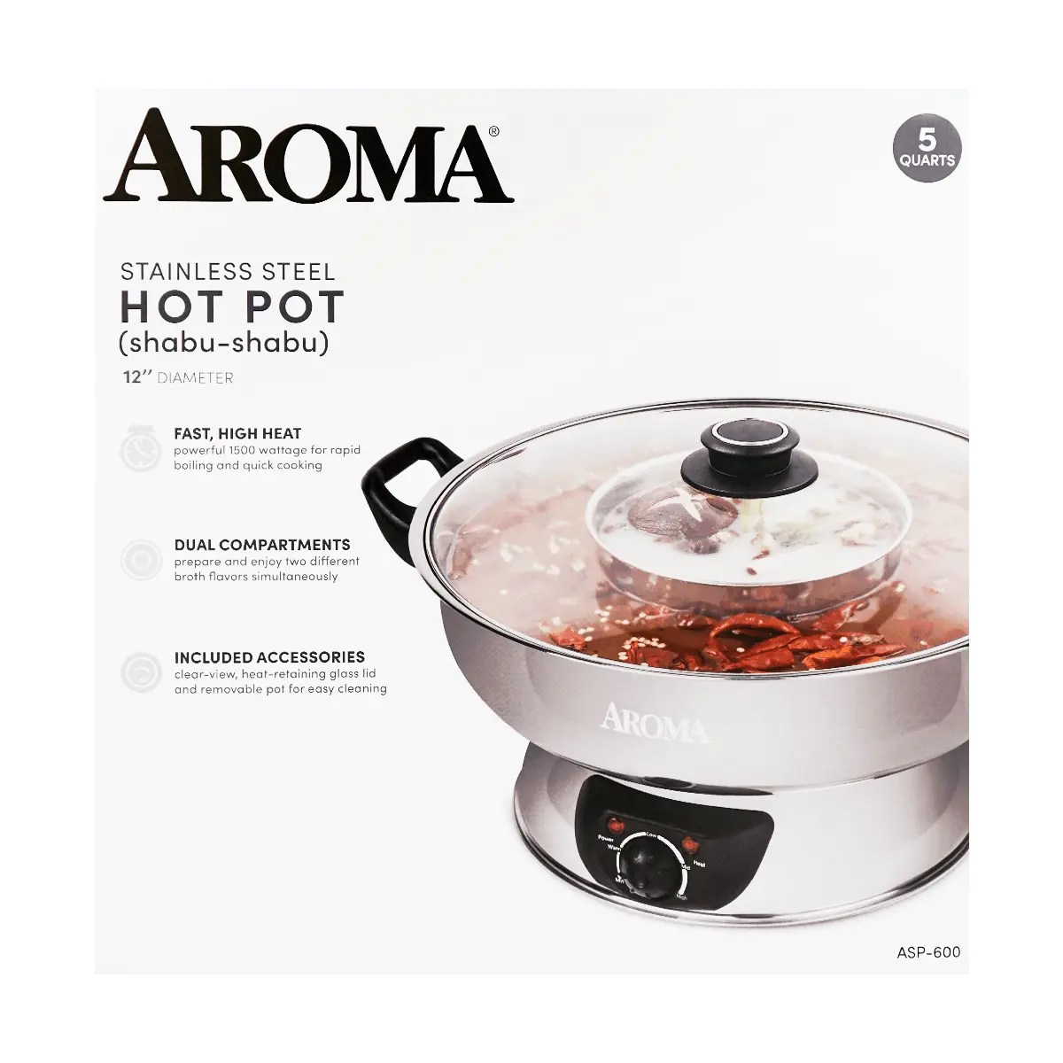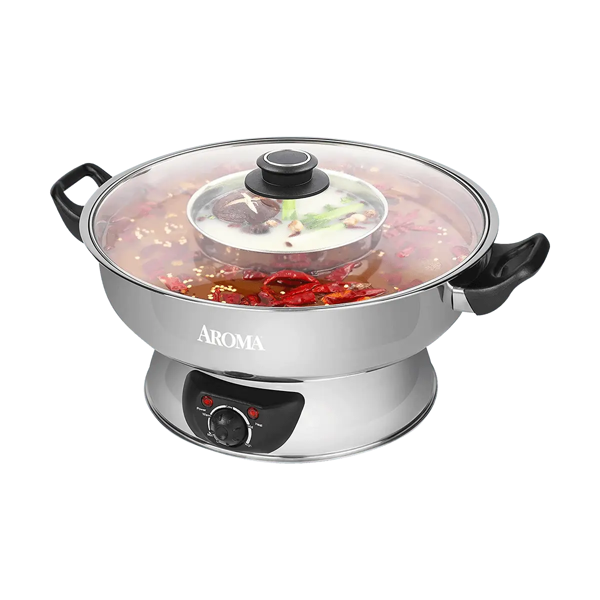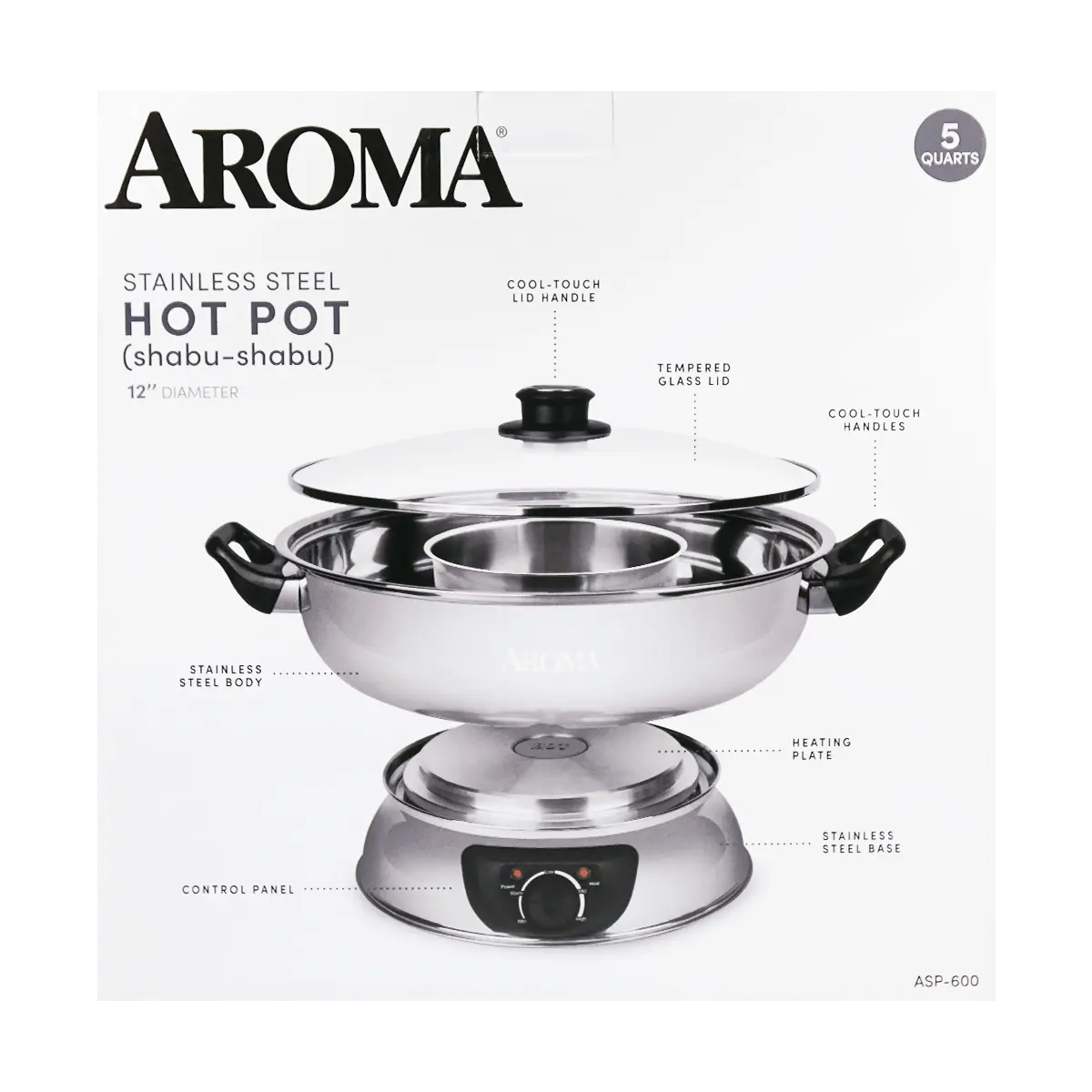 AROMA 【 Guarantee】4-Qt Stainless Steel Electric Shabu Hot Pot ASP-600 1 Year Mfg Warranty