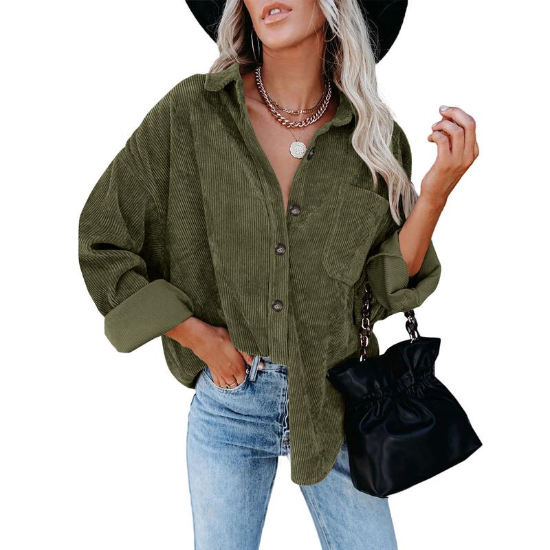 Womens Corduroy Button Down Shirts Boyfriend Long Sleeve Shacket Jacket Tops