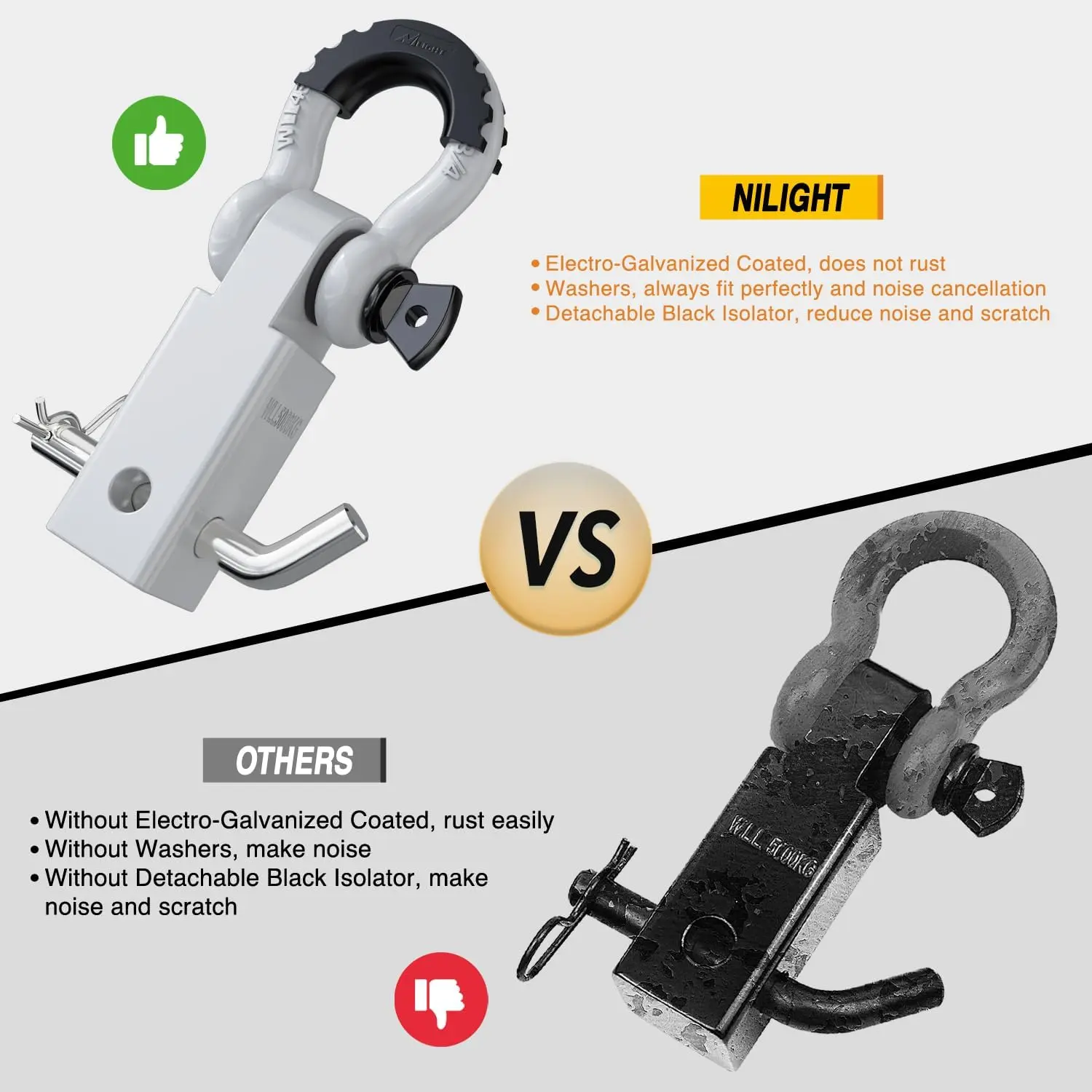 And the installation of it can protect the rear of the car, prevent rear-end collision, and reduce car body damage.The case of trailers, trailers ball use is strictly prohibited directly with tow rope rescue, Nilight Shackle Hitch Receiver is a good choice
