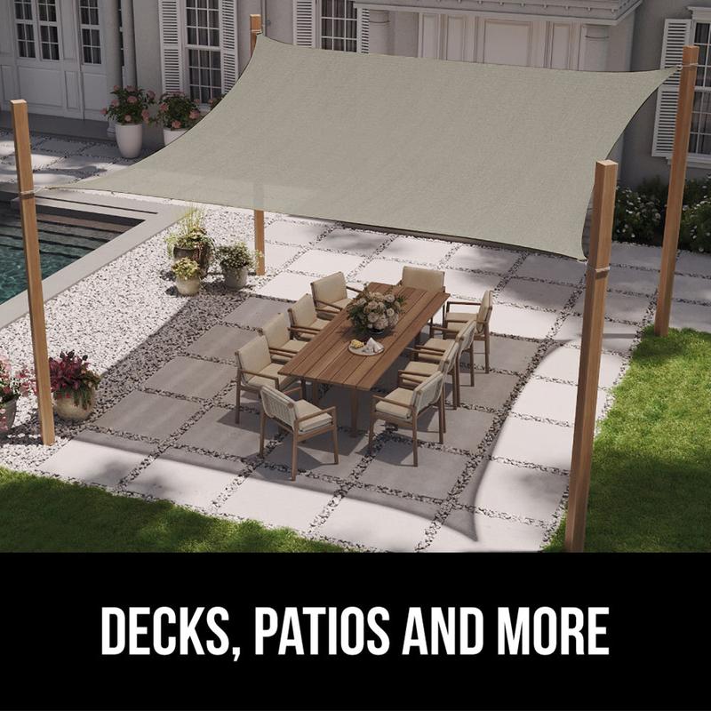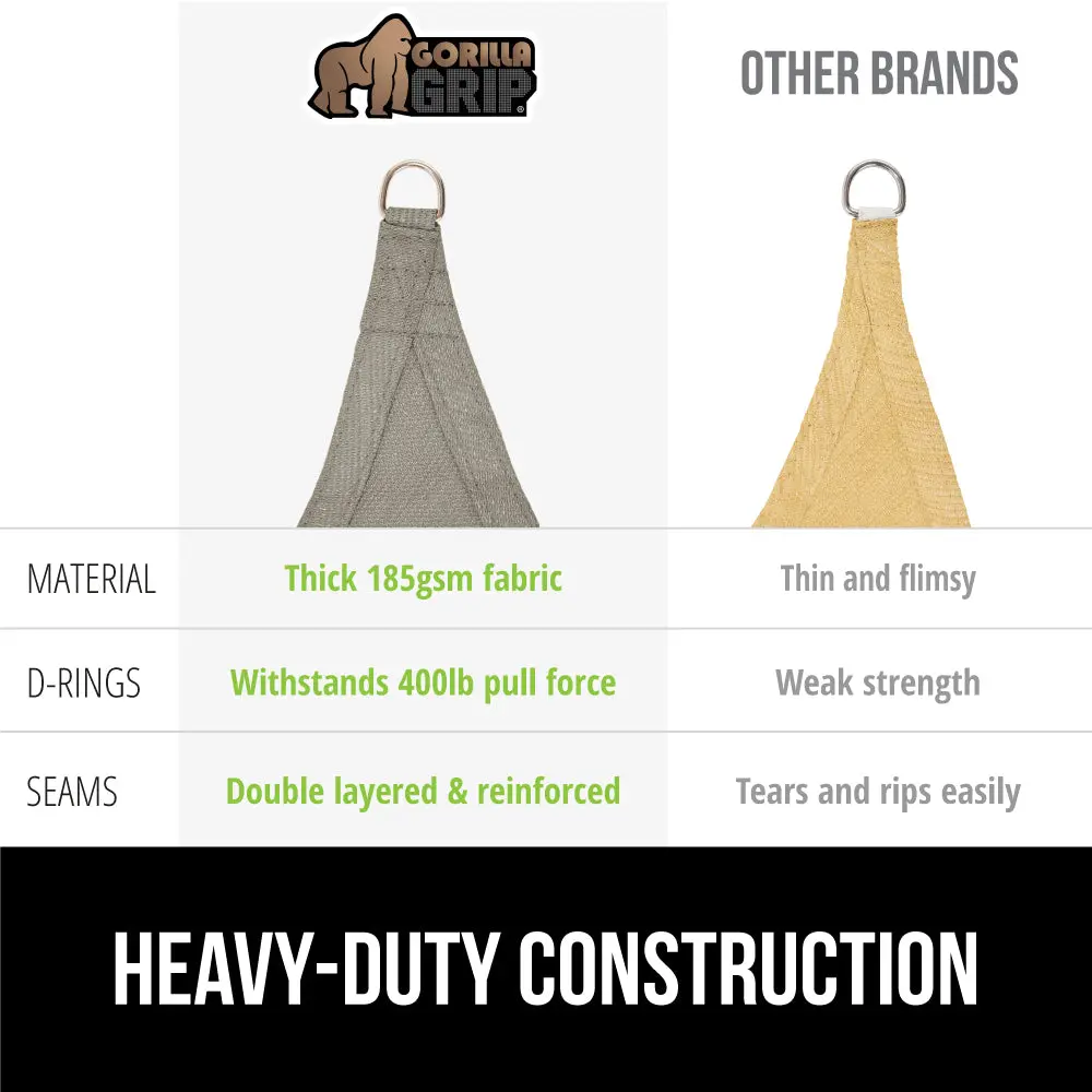 UP TO 87% SHADE AND UV RESISTANT: Gorilla Grip Shade Sails will transform your patio; the thick material is UV resistant and provides up to 87 percent shade; helps you stay protected and comfortable in bright sunlight