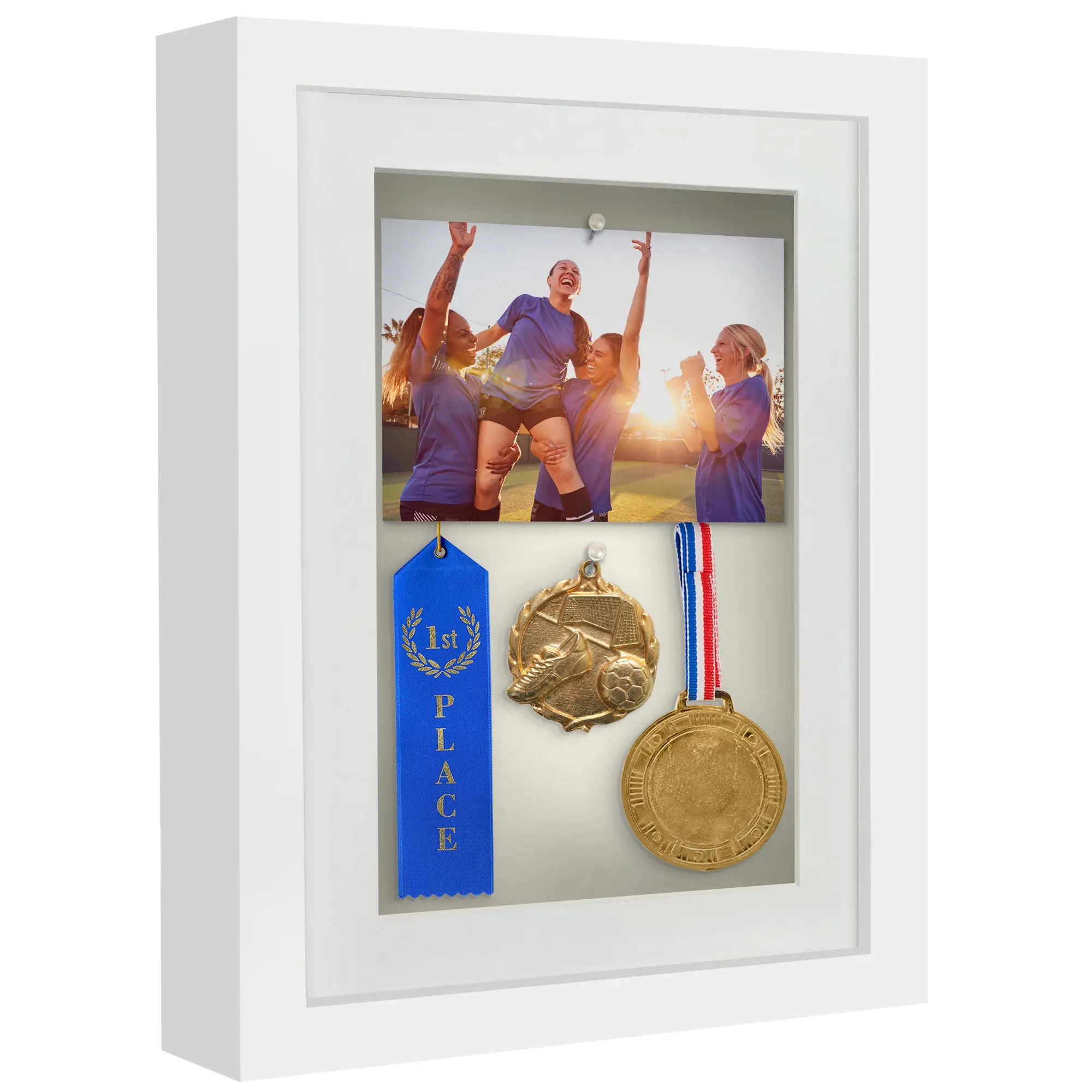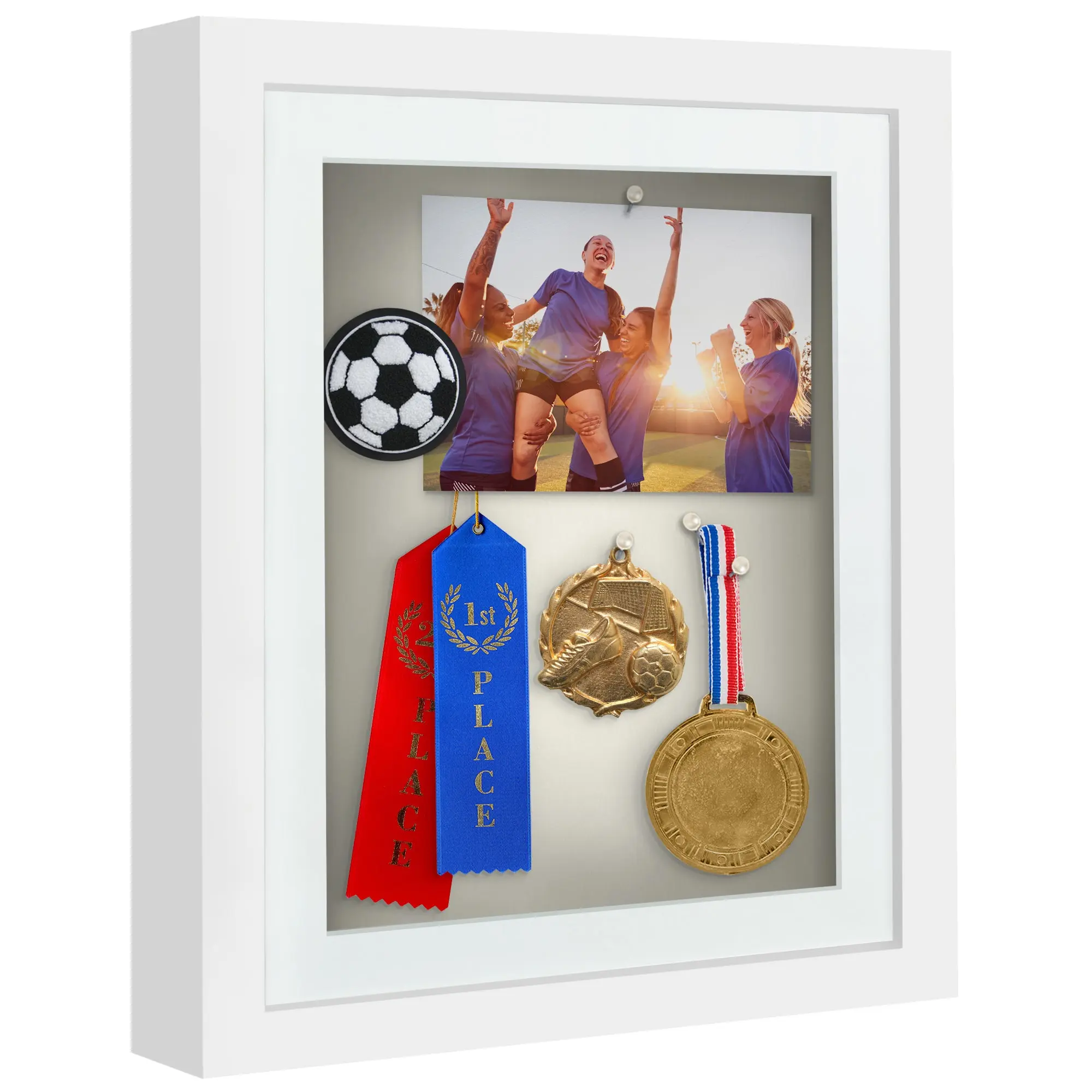 Our Shadow Box frame is perfect for collecting and preserving your most precious memories. Gather your memorabilia throughout the years and place it in a creative way inside this high-quality shadow box frame using push pins on the linen backing. This frame is so versatile that you can also remove the inside pieces of wood to use it as a normal frame. 2.5 inches in depth, this frame is the perfect size for a tabletop or wall-mounted display. It comes with hanging hardware pre-installed on the back. No assembly is required! Keep it for yourself, or give it as a gift to loved ones. Great for birthdays, holidays, anniversaries, weddings, or any other special occasion! Make your memories last a lifetime with these gorgeous home decor products.