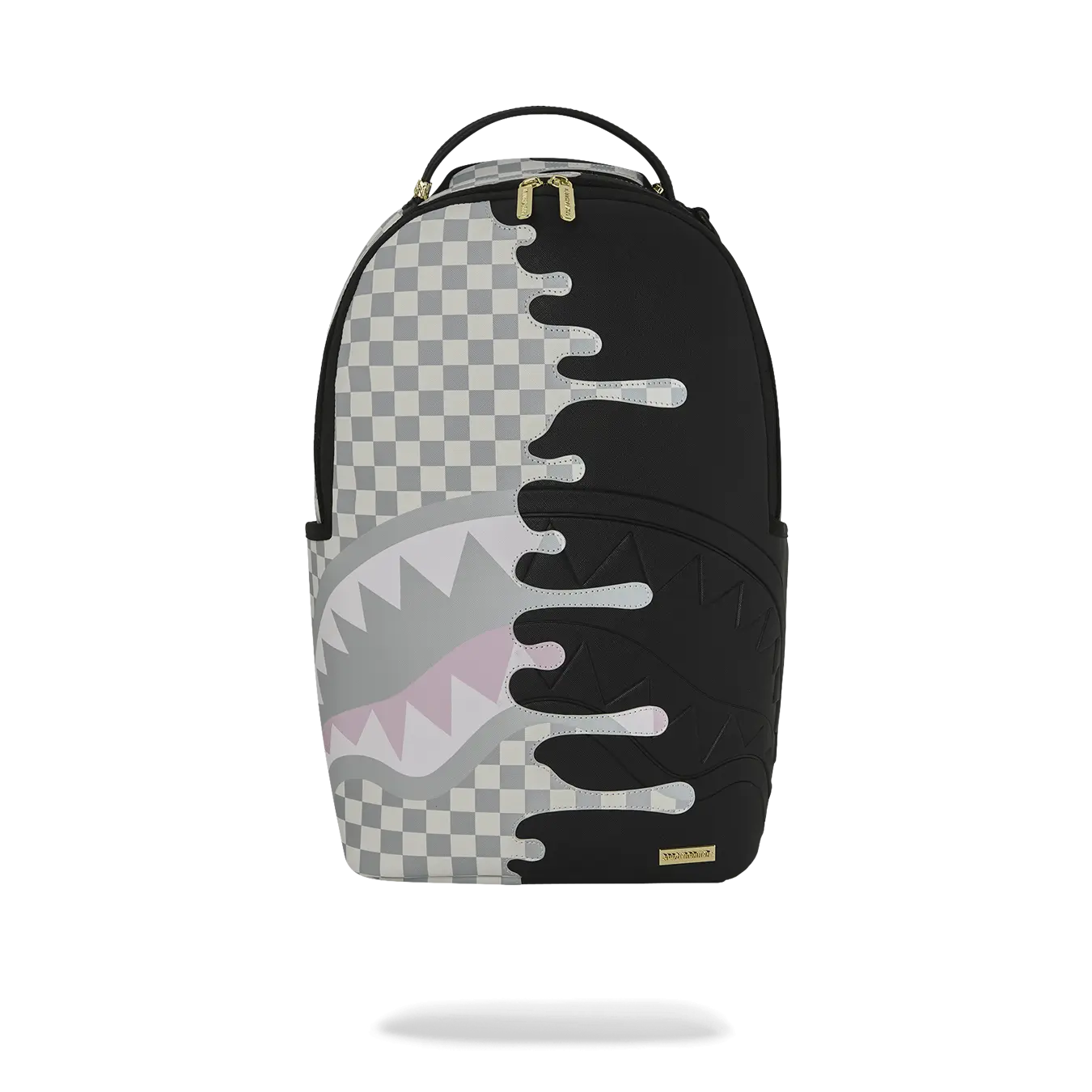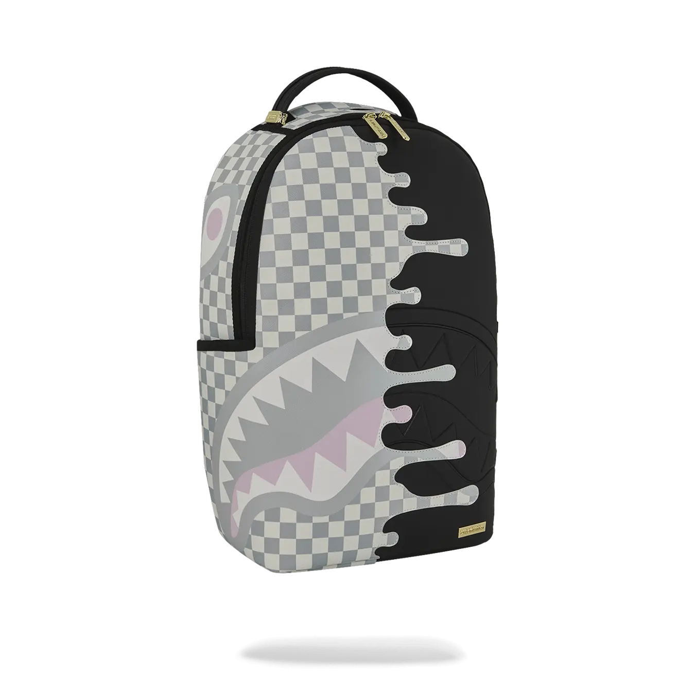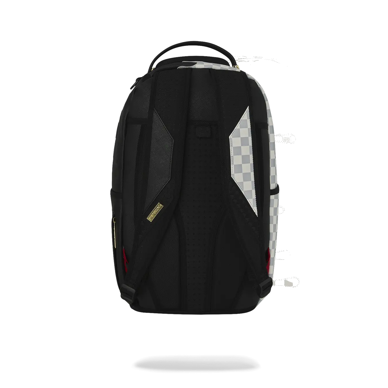 Dimensions: 18" x 6" x 11.5" • Front zipper pocket • Side pockets • Zippered Stash pocket • Separate velour sunglass compartment • Ergonomic mesh back padding • Adjustable Straps for custom sizing • Gold zippers with metal hardware • Metal "Sprayground Authentic" badge • Slide through back sleeve connects to carry-on luggage to free your hands