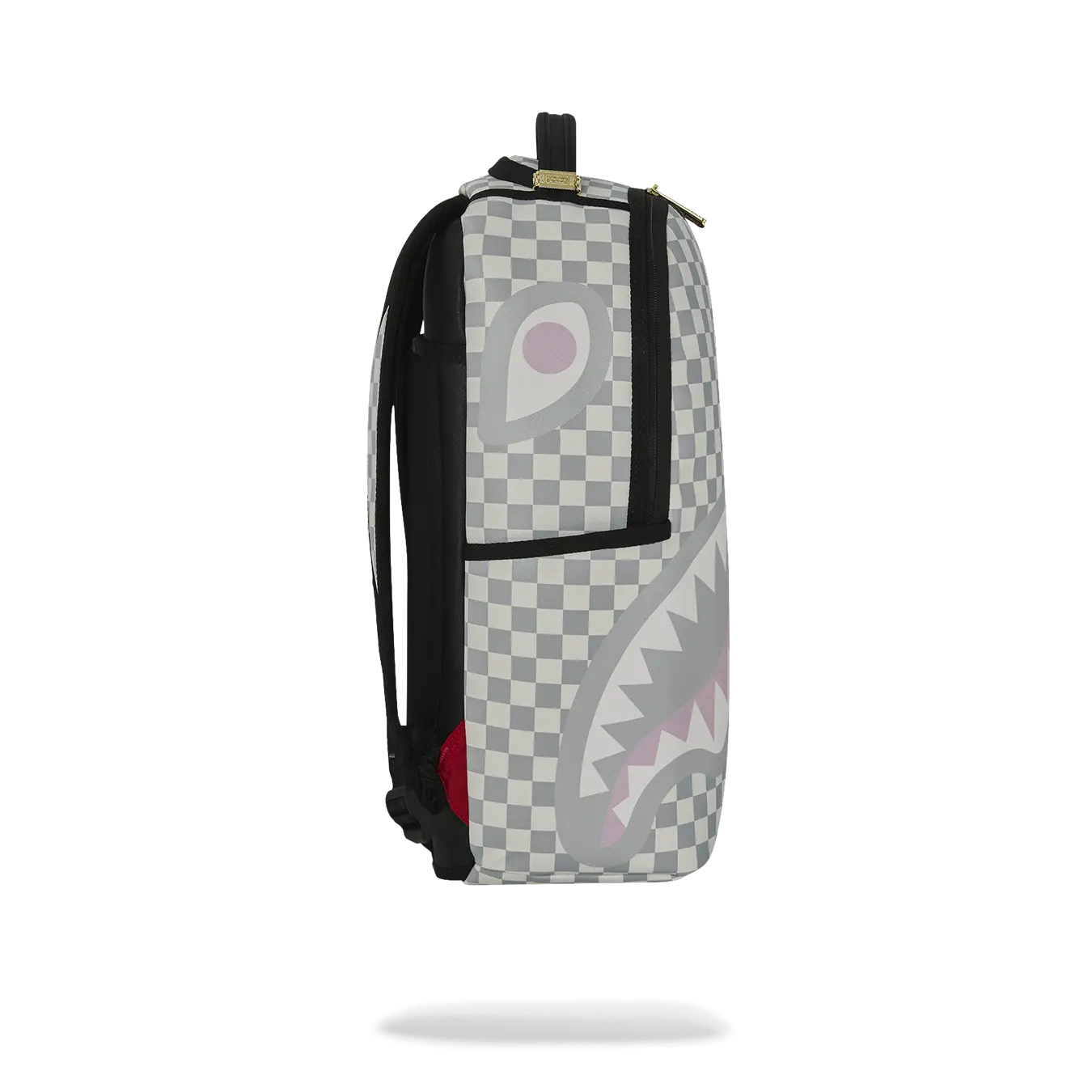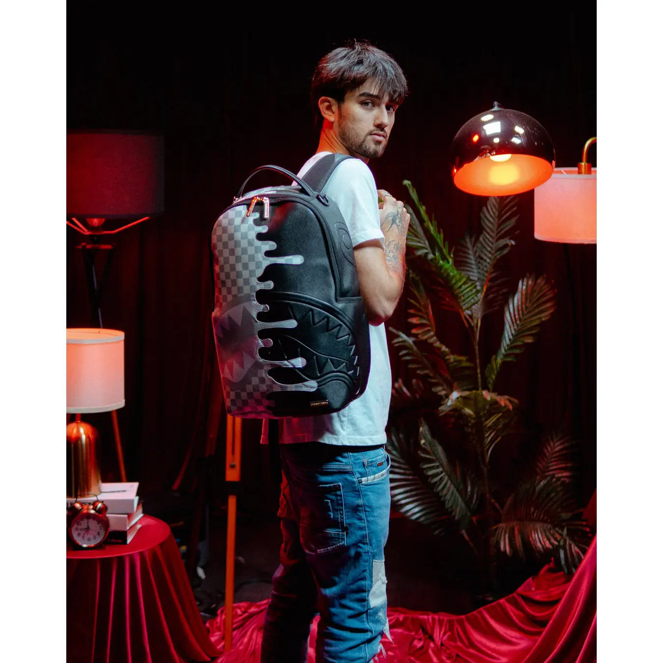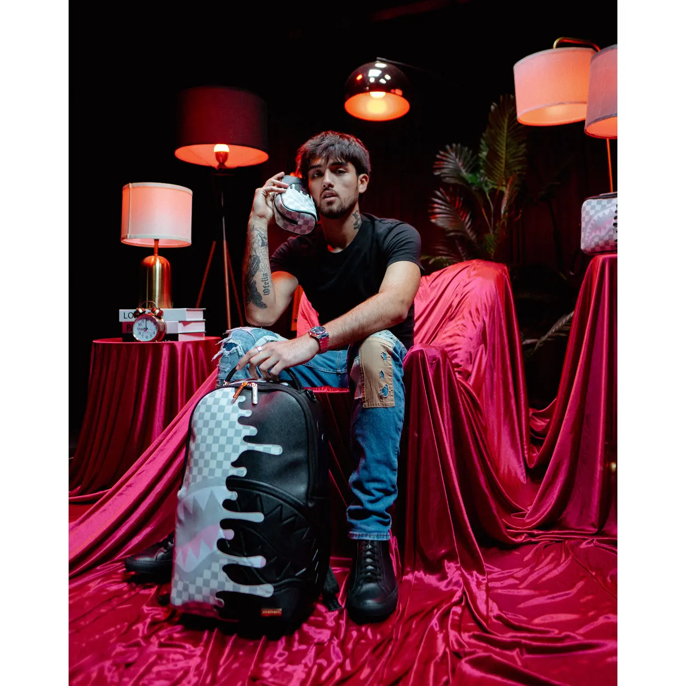 Dimensions: 18" x 6" x 11.5" • Front zipper pocket • Side pockets • Zippered Stash pocket • Separate velour sunglass compartment • Ergonomic mesh back padding • Adjustable Straps for custom sizing • Gold zippers with metal hardware • Metal "Sprayground Authentic" badge • Slide through back sleeve connects to carry-on luggage to free your hands