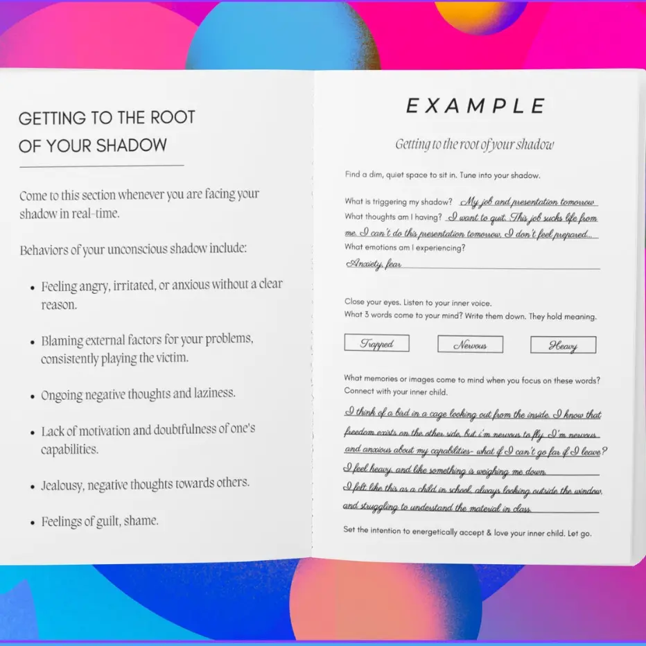 ·“Get to the root of your shadow” guided pages to face your shadows when they appear.