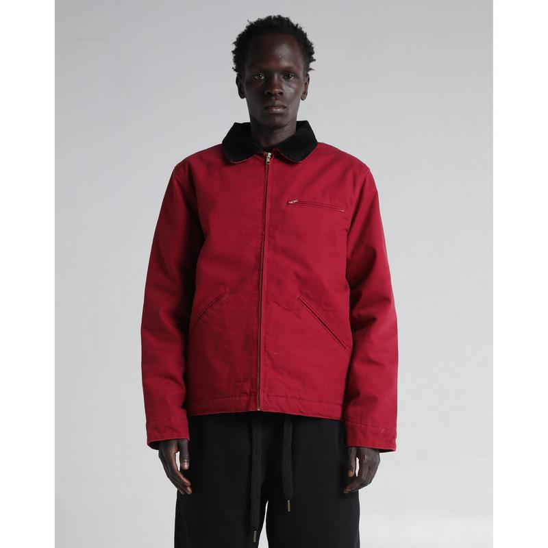 The Aged Canvas Work Jacket 2.0 is a statement layer that transitions effortlessly between casual and elevated styles. Crafted from 100% heavyweight cotton, it features a corduroy collar and diamond-quilted lining. The rinsed wash gives it a worn-in, aged look. Super heavyweight durable canvas ensures longevity. Gold-colored "S" zipper and YKK left chest pocket zipper add distinctive touches. A streetwear essential.