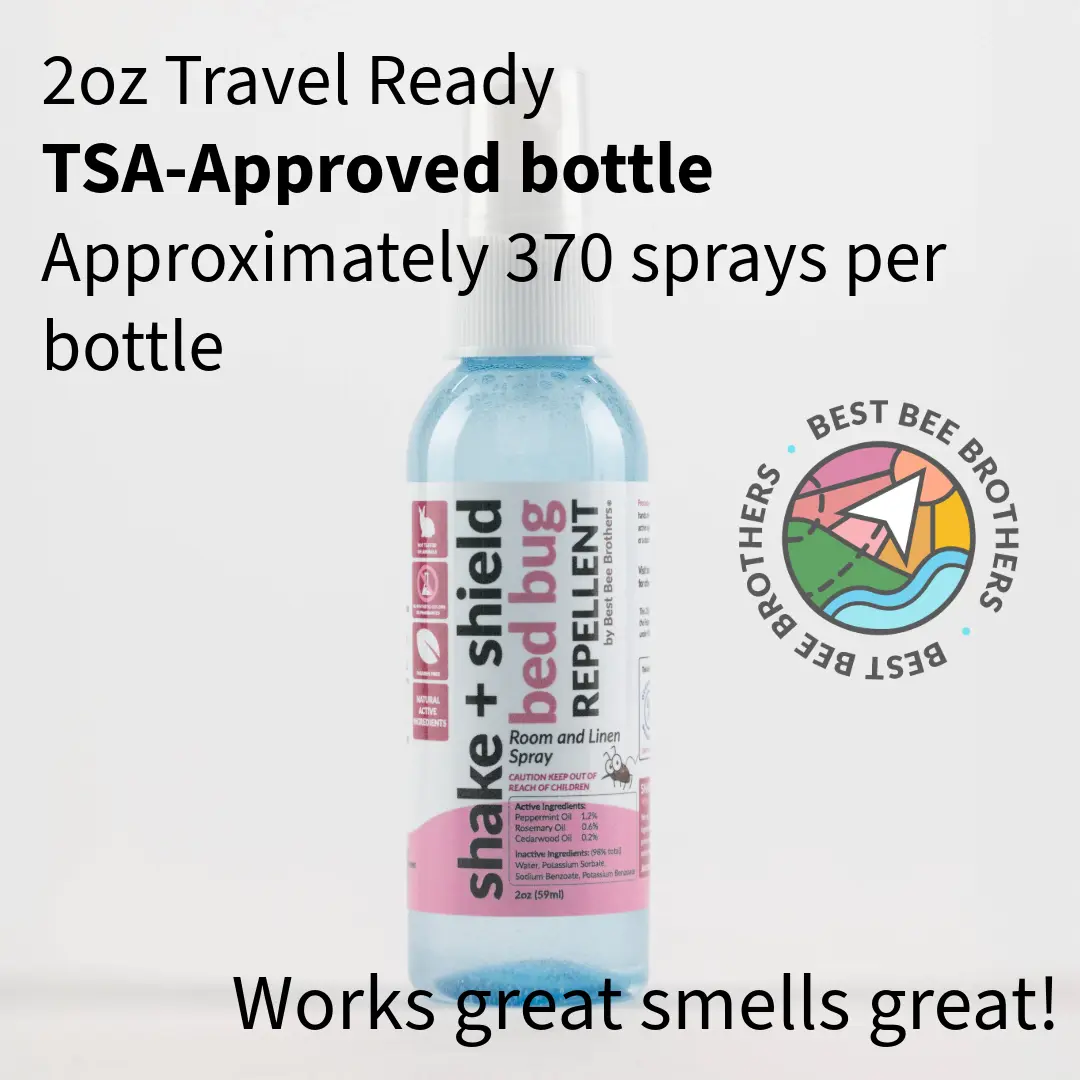 The essential oil blend of peppermint, rosemary, and cedarwood in our non-staining Spray will keep bed bugs away. Studies show these oils help repel bed bugs. Our spray smells pleasant, suitable for pillows, sheets, and luggage. Spray upon arrival and before sleep. Use twice daily for best results.