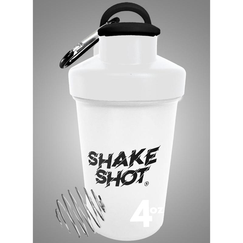 ·The Shake Shot is a mini 4 oz. shaker bottle with a carabiner clip and shaker ball to easily attach to your gym bag, backpacks, or keys to work as a supplemental container for storage and a shaker cup all in one; no more dry scooping for working out!