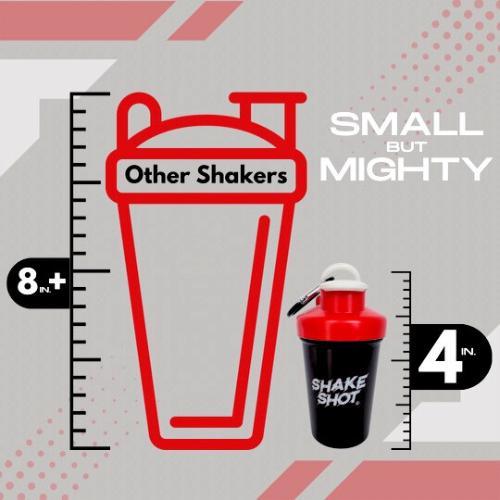 ✨ Compact & Convenient Design ✨ Shake Shot is a mini 4 oz shaker bottle with a carabiner clip and shaker ball. It easily attaches to your gym bag, backpacks, or keys. No more dry scooping for workouts! Perfect for carrying small powder supplements like creatine or BCAAs. At 4 inches tall and 1.5 inches wide, it holds 4 fluid ounces. Say goodbye to oversized, smelly protein shakers. Stay focused on your fitness goals without distractions.