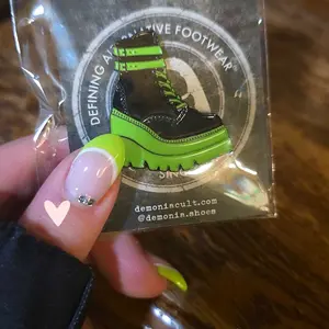 I absolutely love this pin!! It is so cute and is amazing quality! I actually own this exact pair of Demonia Boots and I absolutely love them they are my favorites!! And being able to have a little pin is amazing!! It is so cute and is being proudly displayed on backpack!!