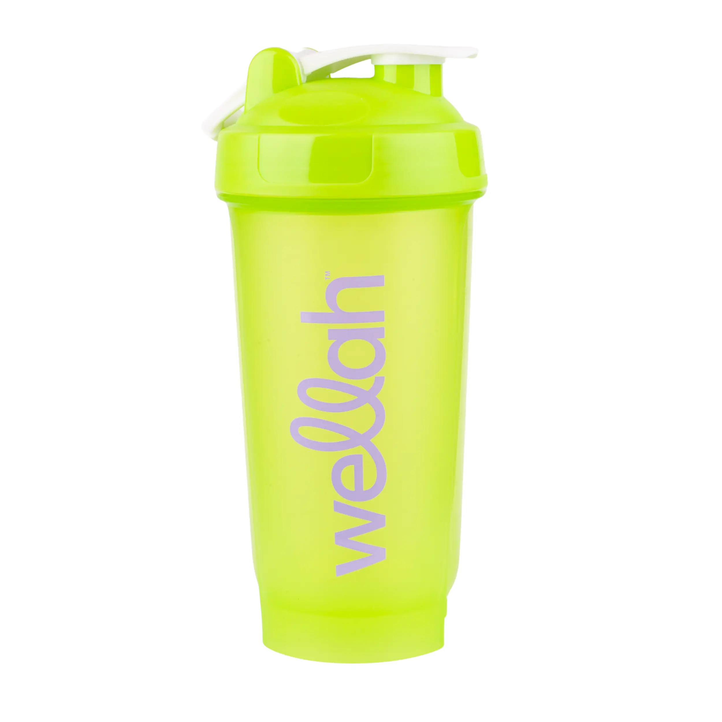 Okay, this Wellah shaker bottle is the best thing since shaker bottles. No ball, no mess — just a smart screen that mixes everything smooth. The lid locks tight too, so you can just throw it in your bag and head out.