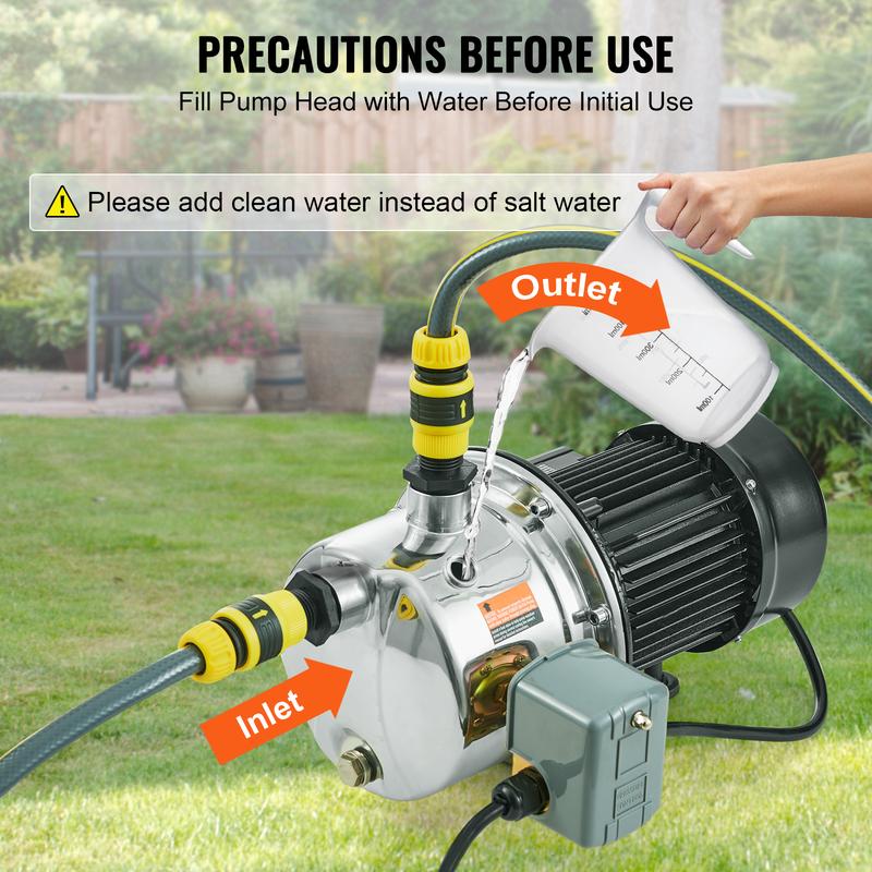 • Commercial & Household Use: This shallow well jet pump is incredibly versatile, perfect for supplying fresh water to large residences, farms, and cottages, while also providing solutions for garden irrigation, boosting water pressure for faucets, supplying water for car washing, and even facilitating high-rise water supply needs.