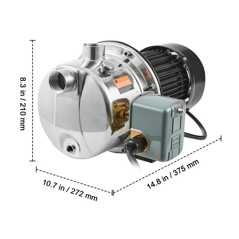 • Built to Last: Crafted from 304 stainless steel, our shallow well jet water pump is wear-resistant and corrosion-resistant, making it ideal for outdoor use in courtyards and farms. With a rear heat dissipation port, it facilitates immediate cooling, while the built-in automatic thermal overload protector ensures uninterrupted operation for years to come.