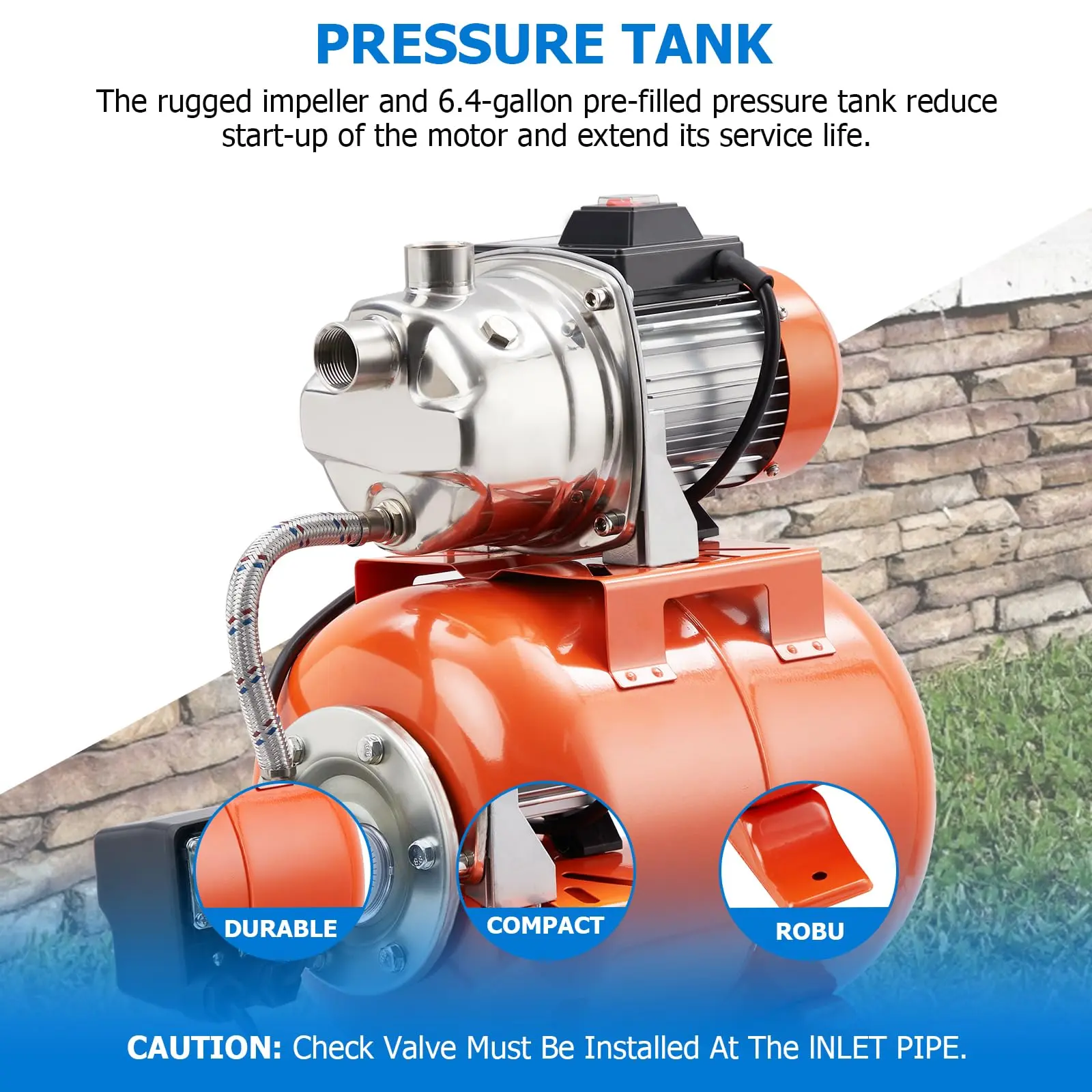 GARVEE 1HP Shallow Well Pump with Pressure Tank, Stainless Steel, 115V Irrigation Pump, Automatic Water Booster Jet Pump for Home, Garden, LawnGARVEE 1HP Shallow Well Pump with Pressure Tank, Stainless Steel, 115V Irrigation Pump, Automatic Water Booster Jet Pump for Home, Garden, LawnGARVEE 1HP Shallow Well Pump with Pressure Tank, Stainless Steel, 115V Irrigation Pump, Automatic Water Booster Jet Pump for Home, Garden, LawnGARVEE 1HP Shallow Well Pump with Pressure Tank, Stainless Steel, 115V Irrigation Pump, Automatic Water Booster Jet Pump for Home, Garden, Lawn