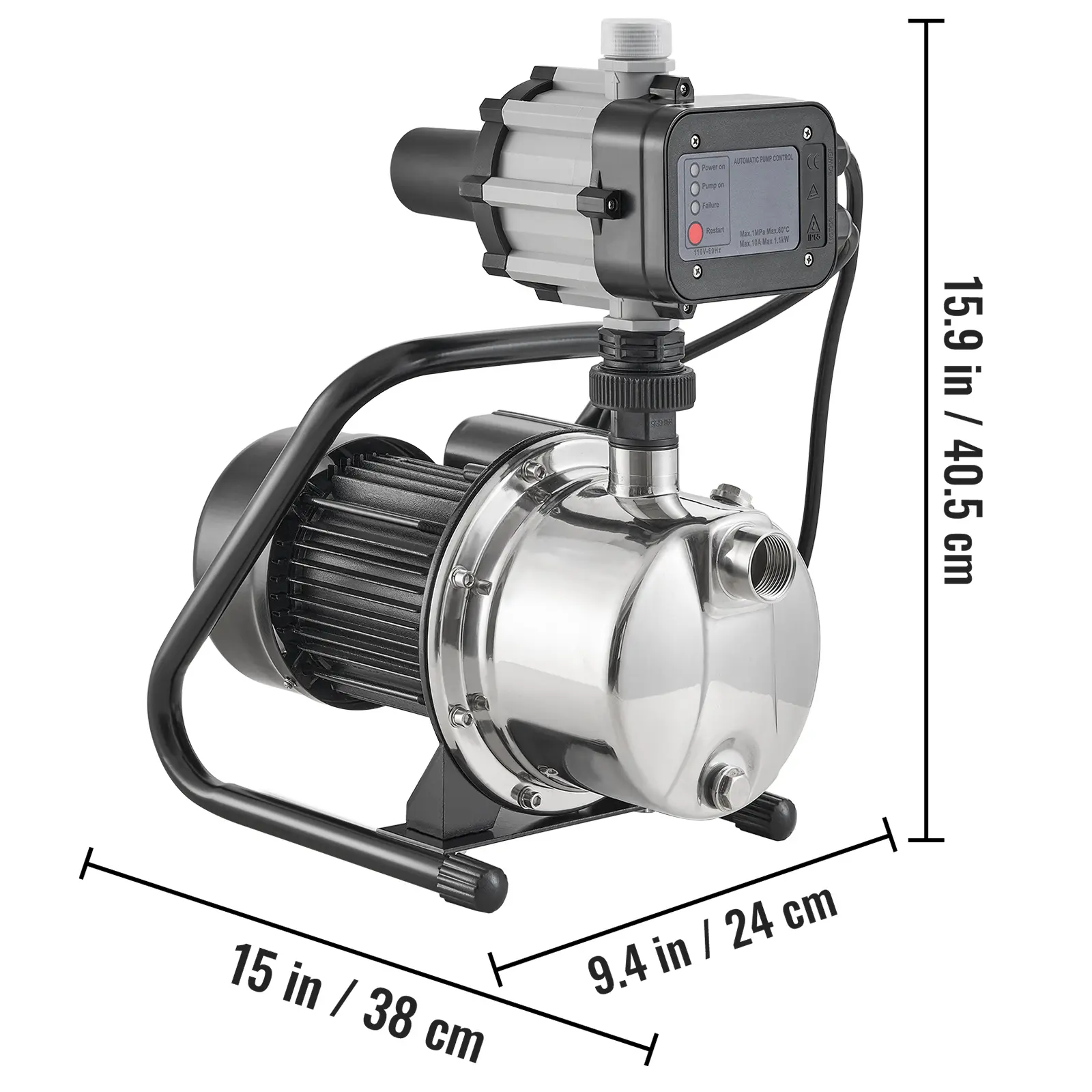 • 1HP Powerful Garden Pump: Max Pressure: 87 psi; Max Suction: 26.2 ft. This shallow well pump has a powerful 1HP motor, providing 23 GPM max flow and 145 ft max head. The pump can boost home water pressure with an electronic controller to ensure automatic work and prevent dry running. Whether you're in the shower or using the faucet, this powerful pressure booster will keep your water pressure going strong.