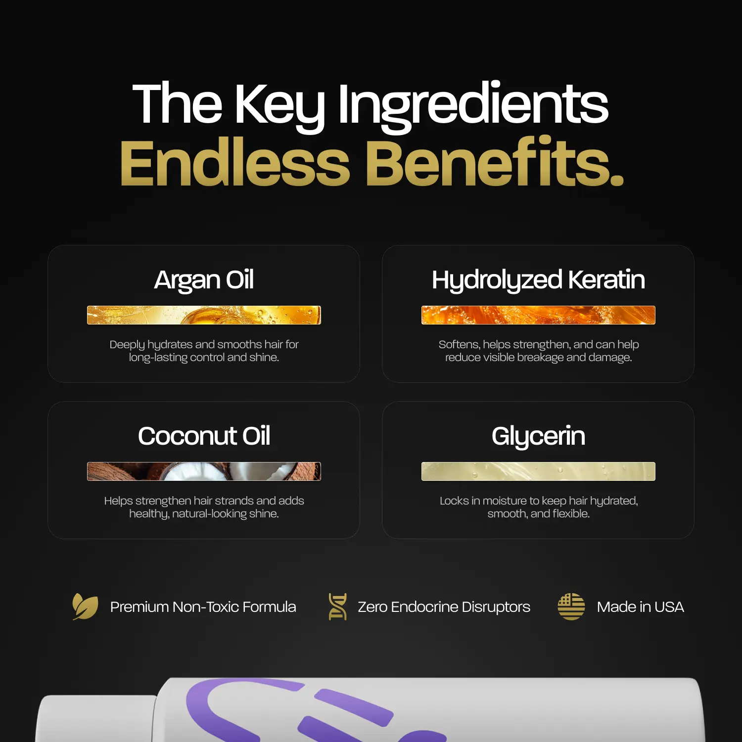 ·Premium, Non-Toxic Ingredients: Shampoo powered by Coconut Oil, Aloe Vera, and Peppermint Oil. Conditioner powered by Argan Oil, Hydrolyzed Keratin, and Coconut Oil — no sulfates, no parabens, no phthalates.