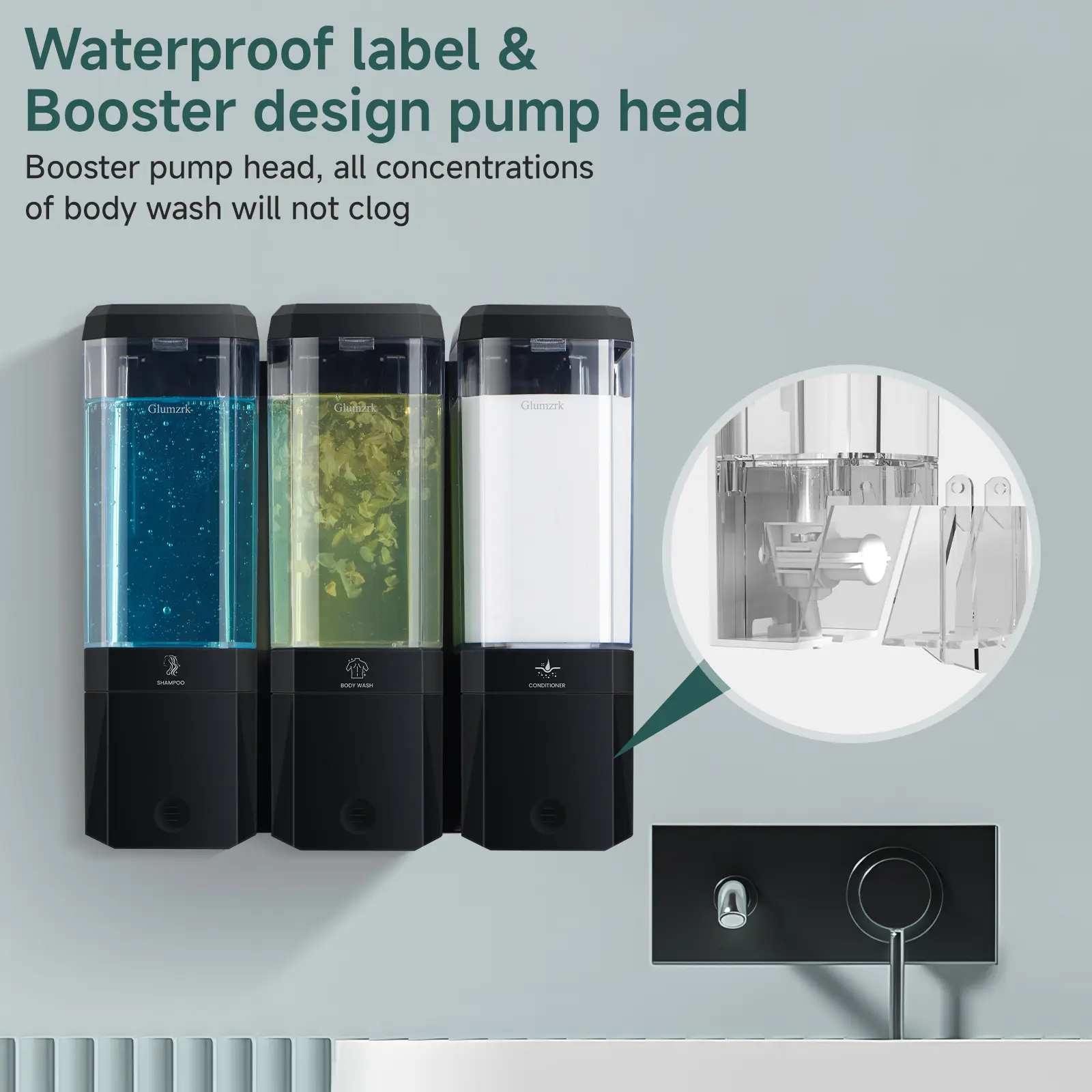 ·Premium Durability: Crafted from robust,drop-resistant ABS plastic, Glumzrk's shampoo dispenser ensures long-lasting use.The booster pump accommodates all shower gel concentrations, especially smooth pump out conditioner.The lock design adds child safety.