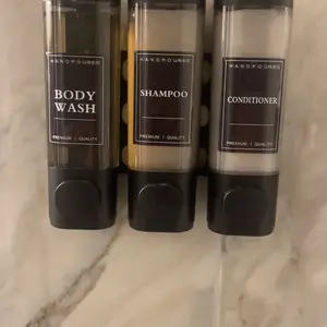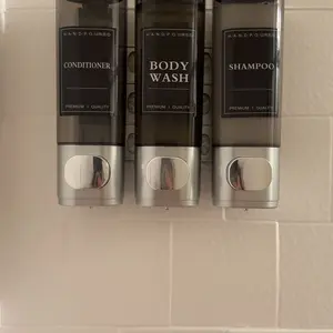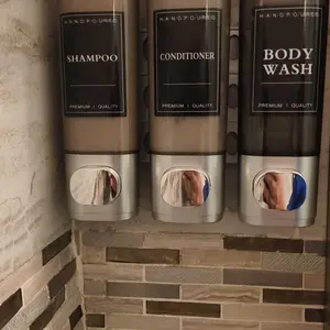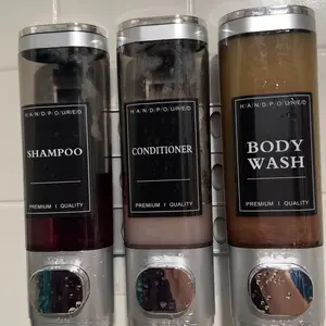 ·LOCKABLE DESIGN--Shower soap dispenser 3 chamber no drill equipped with a key lock to prevent any unnecessary loss, especially strengthen management in public places , suitable for different types of liquids such as shower gel, shampoo, conditioner, laundry detergent, dishwashing soap, shower gel, hand sanitizer, etc.
