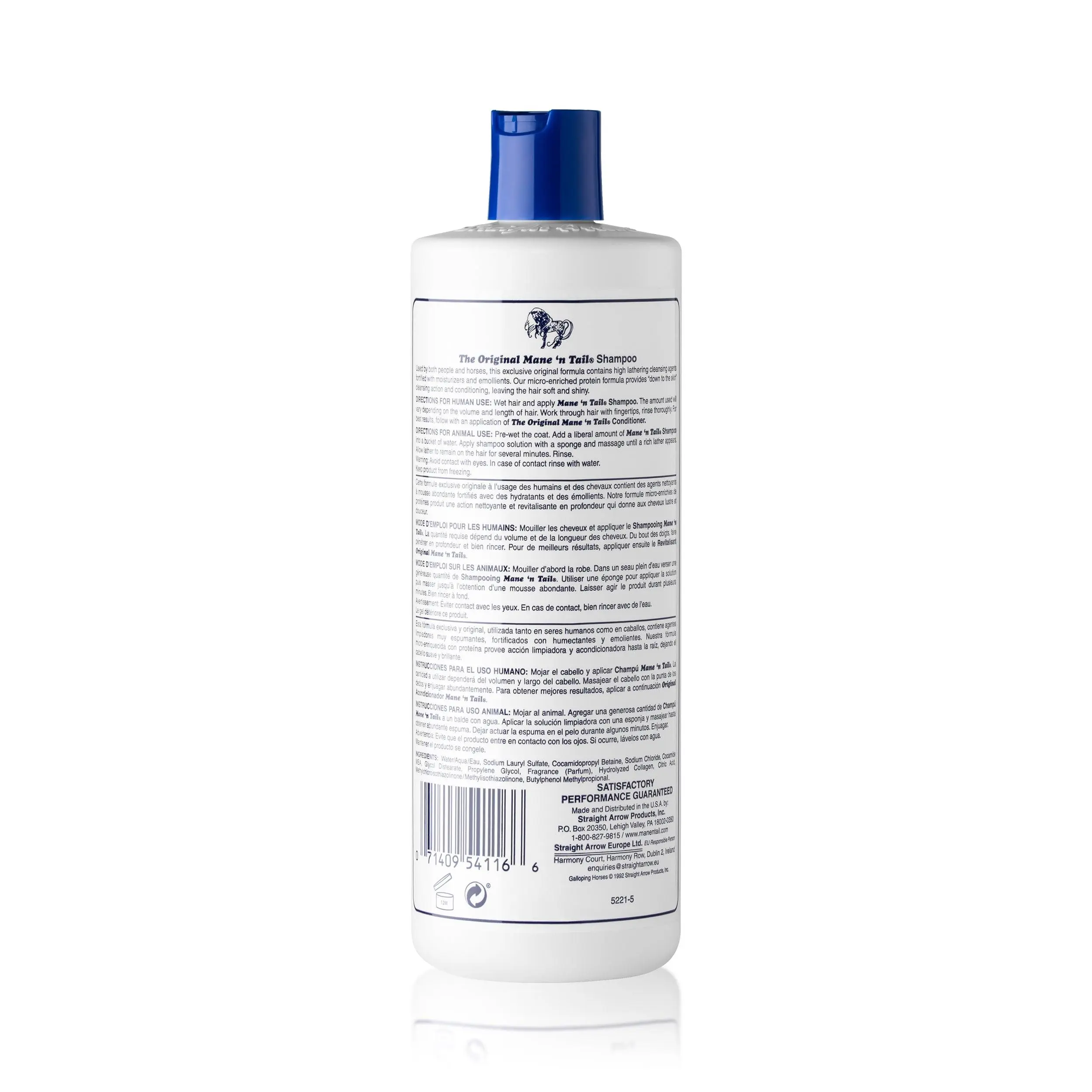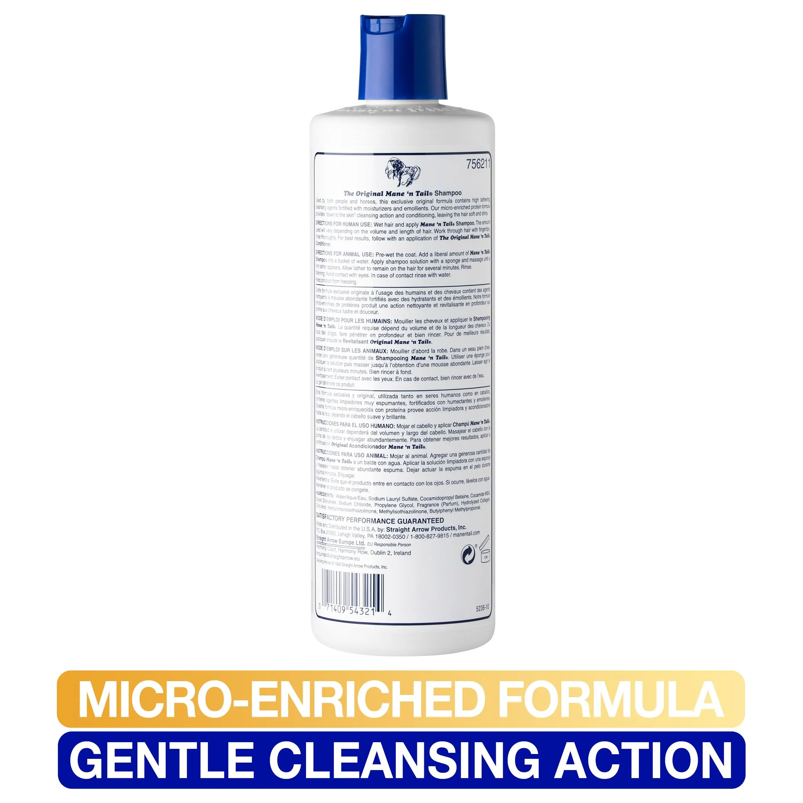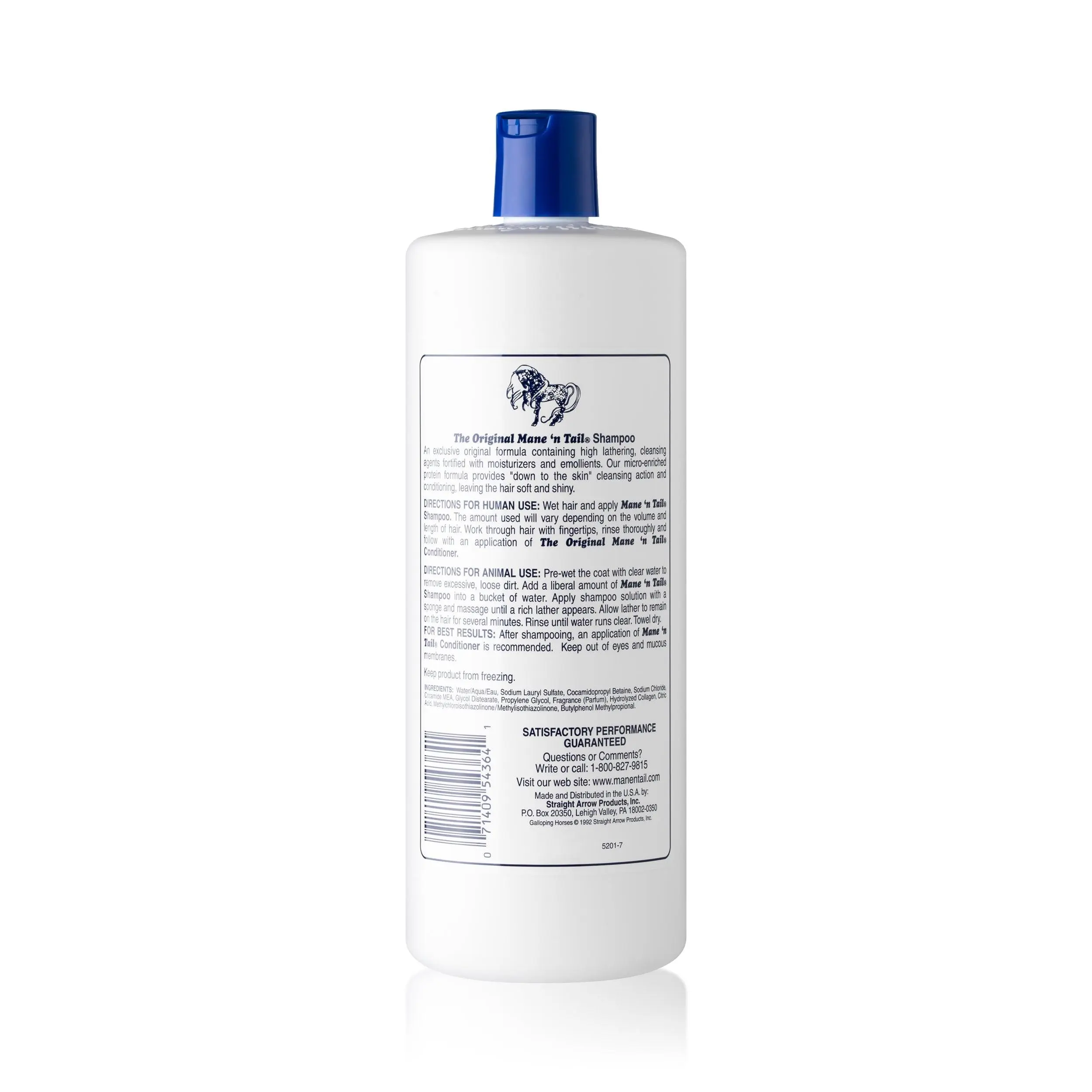 The ORIGINAL horse to human crossover shampoo that helps to maintain and achieve fuller, stronger, longer, healthier-looking hair. An exclusive micro-enriched protein formula that leaves the hair soft and shiny. Gentle rich fragrant lather provides “down to the scalp” cleansing action without stripping natural oils. Fortified with moisturizers and emollients that helps to provide body, shine and manageability for healthy-looking hair every time you shampoo. The solution for maintaining and achieving longer, healthier hair. Pet or Human use approved. Safe and gentle for all hair types. Keep from Freezing.