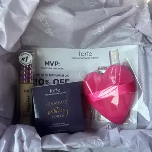 Tarte is a must have in my make up routine & bag ! I love all things Tarte! This particular order I got shape tape concealer, a cute little heart shaped powder puff for free, and pink loose setting powder 😍 #obsessed #tarteforthewin #tartedoesitagain