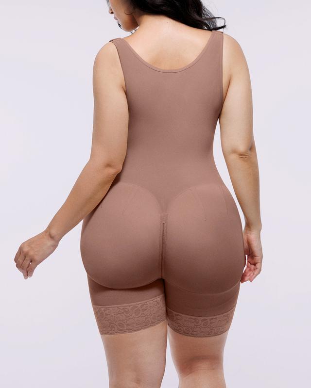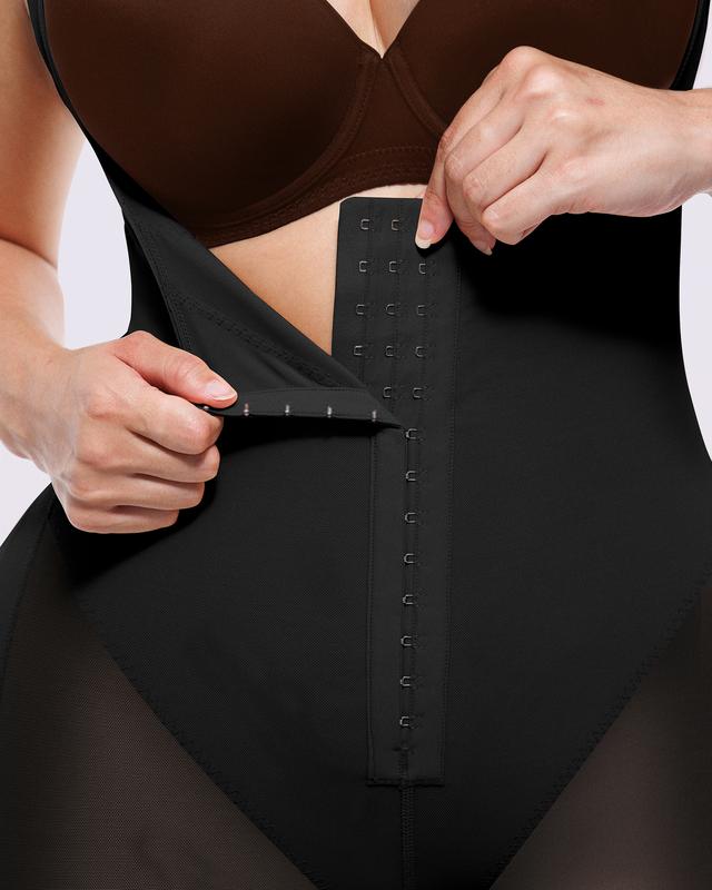 • Butt-Lifting Design, Triple-Layer Compression, 3-Row Front Hooks, Anti-Slip Lace Leg Bands, Extended Zipper Crotch.