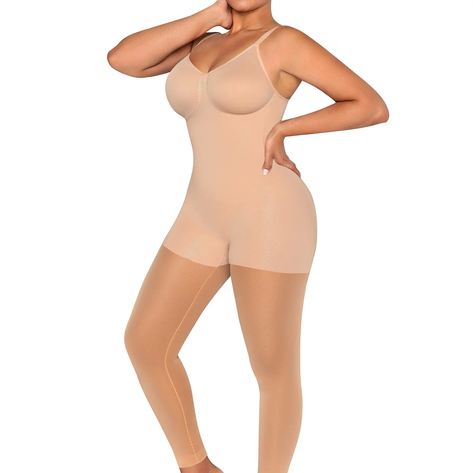 Simplify your routine with our all-in-one bodysuit, seamlessly combining a bra, panty, sheer tights, and sculpting shapewear into one step. Engineered with advanced knitting technology, it provides seamless, precise shaping and eliminates all sources of friction, while cloud-like fabric offers a barely-there feel—it's breathable, stretchable, and exceptionally durable. Effortless elegance for travel, work, or any other on-the-go moment.