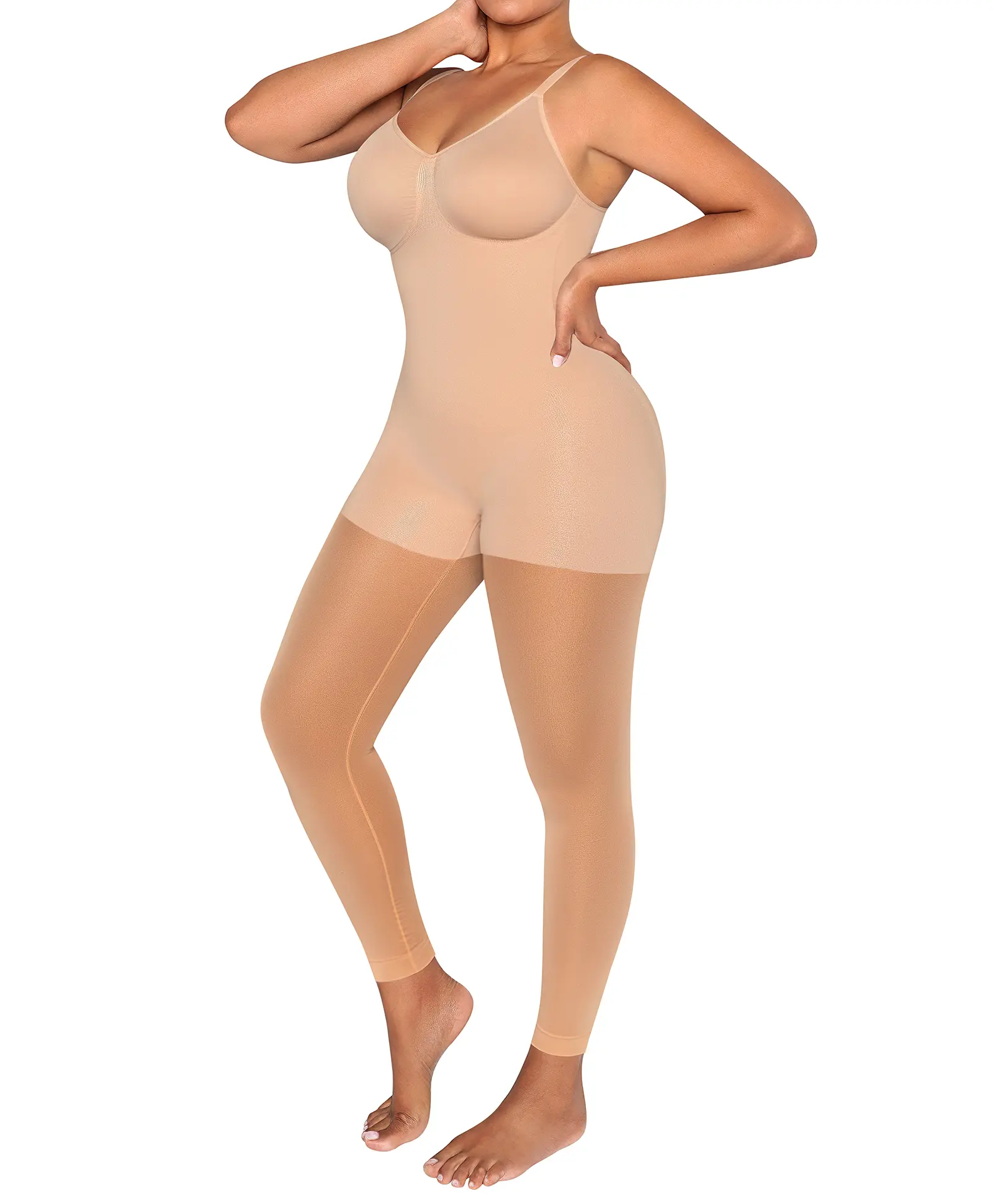 Simplify your routine with our all-in-one bodysuit, seamlessly combining a bra, panty, sheer tights, and sculpting shapewear into one step. Engineered with advanced knitting technology, it provides seamless, precise shaping and eliminates all sources of friction, while cloud-like fabric offers a barely-there feel—it's breathable, stretchable, and exceptionally durable. Effortless elegance for travel, work, or any other on-the-go moment.