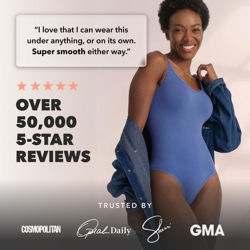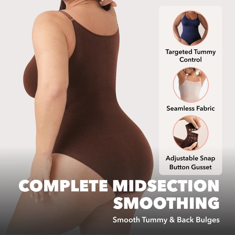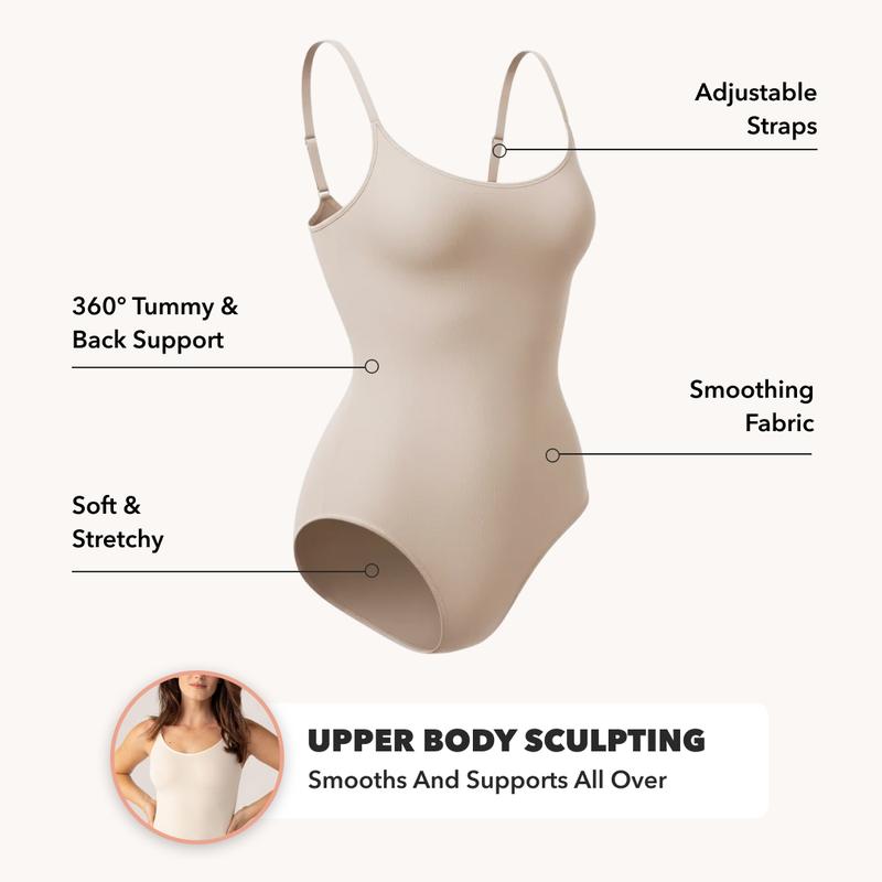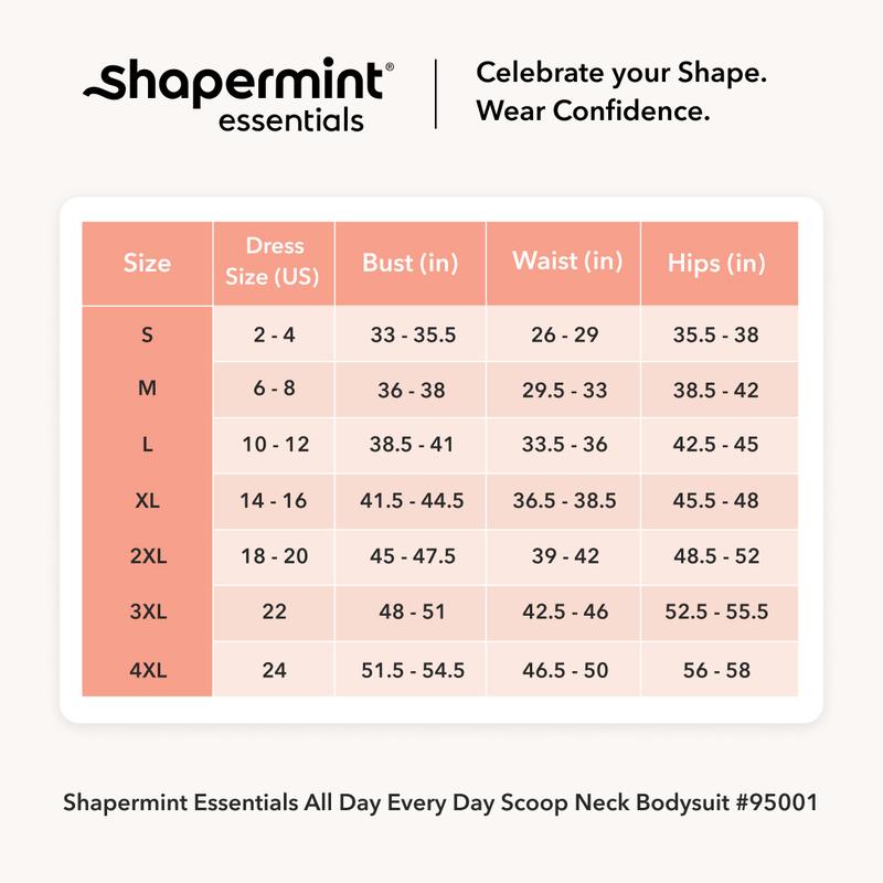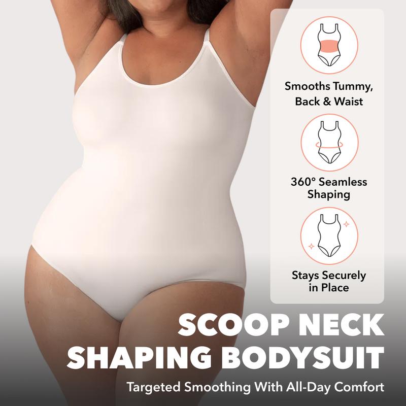 The Shapermint Scoop Neck Shapewear Bodysuit is designed for comfortable everyday wear thanks to its soft, breathable, and stretchy fabric, paired with medium compression on the sides, back, tummy, and hips to instantly smooth and create a shape-enhancing look while keeping the chest area free from compression. The scoop neckline offers a timeless look that works as a base layer or a standalone outfit. With adjustable, dig-free straps for a personalized fit and a snap-button gusset for all-day ease, this bodysuit moves naturally with the body and is easy to wear throughout the day. Wear it with or without a bra, layered or on its own.