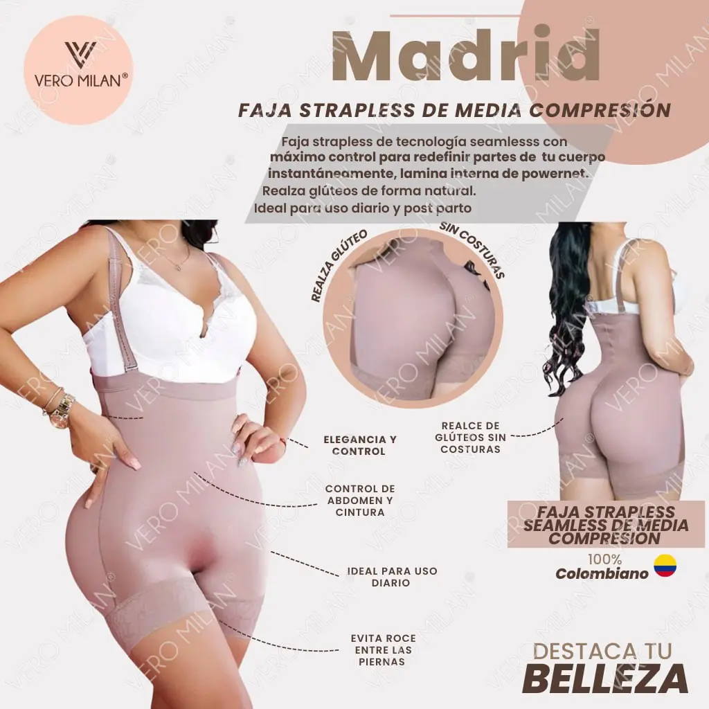 Colombian Seamless Fabric: Made with advanced seamless technology that adapts to your curves, providing control, comfort, and a natural look without visible lines.