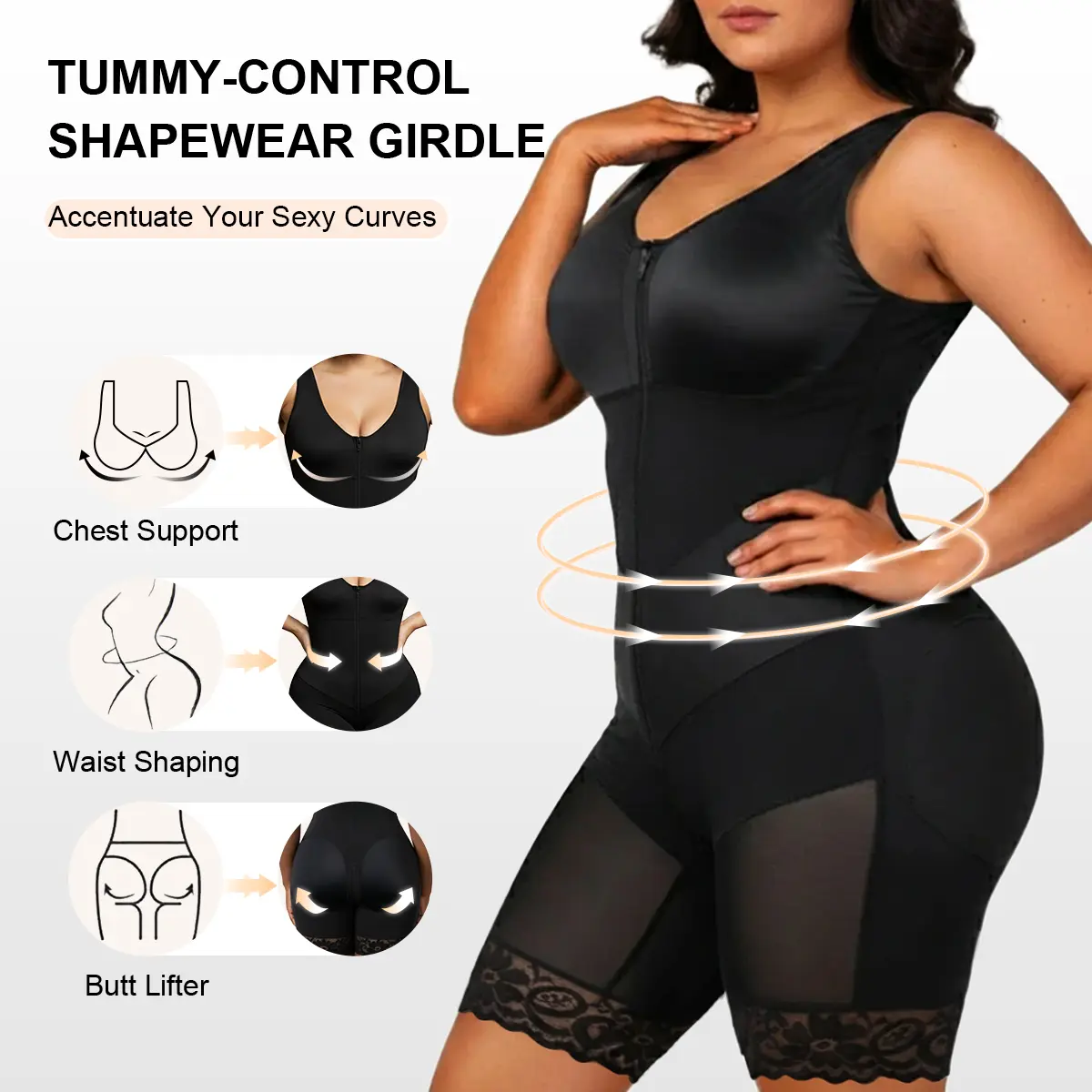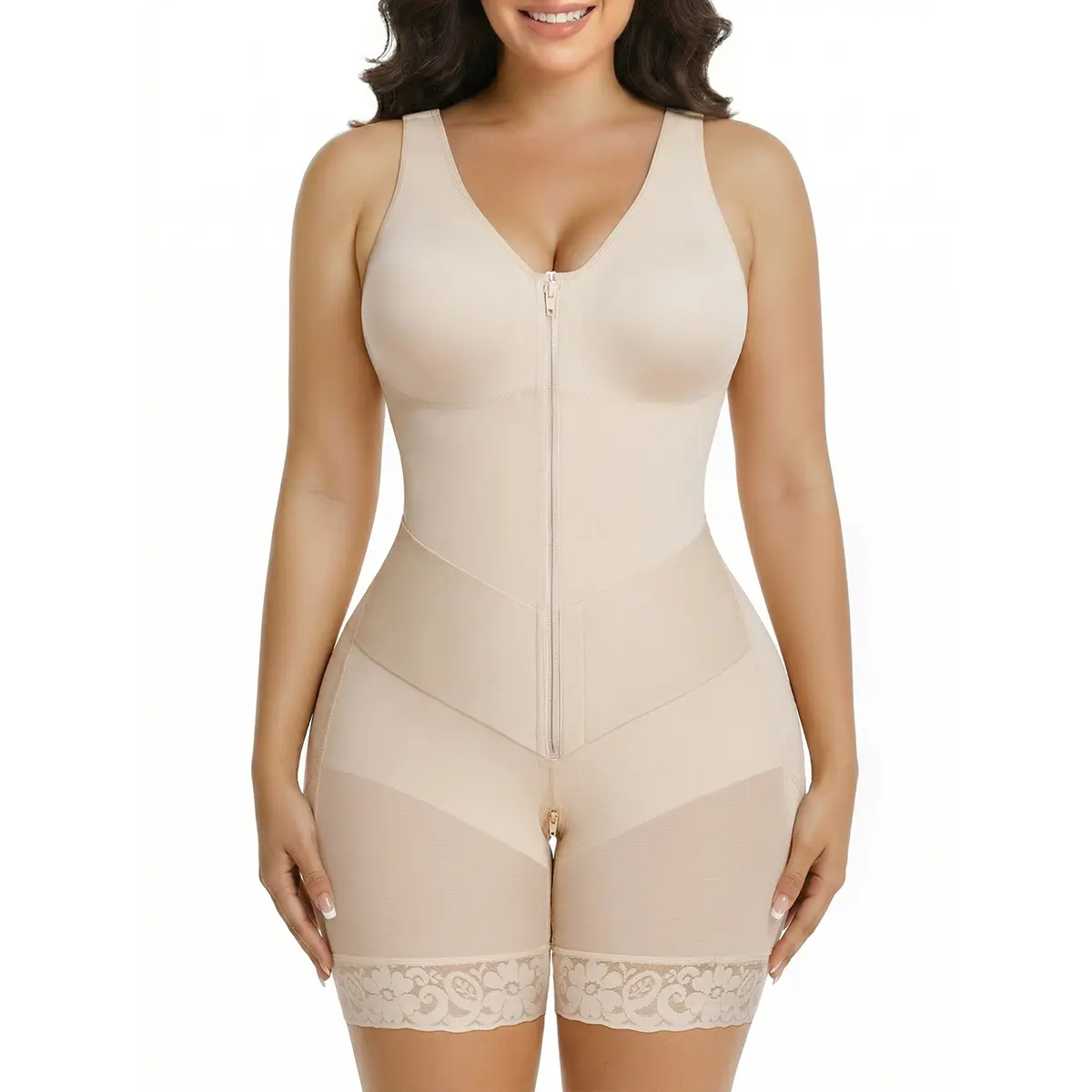 The extended zippered crotch opening lets you handle bathroom breaks without fully undressing. Besides, the lace snti-slip silicone strip along the leg hems grips gently but firmly, keeping the fajas in place through every movement—walking, sitting, or stretching.