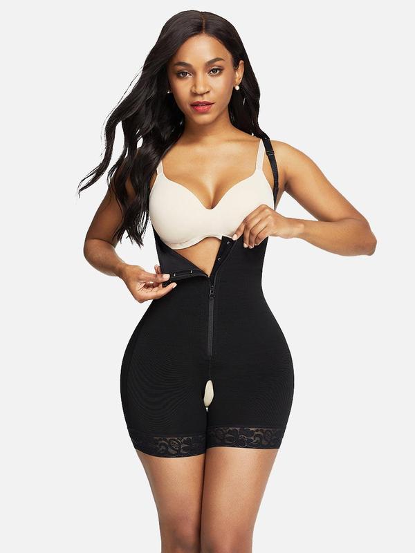 DESIGN SHAPEWEAR: We powered this shapewear with 3 rows of hook to keep a tight fit. Pretty, flexible lace moves with you for a comfortable fit. Free of underwire and bpadding for total comfort. Open crotch design makes it convenient to use the bathroom. Mid thigh length help you legs. The hip design uses a single layer of fabric to release hip pressure, you will shape charming Peach Buttock!