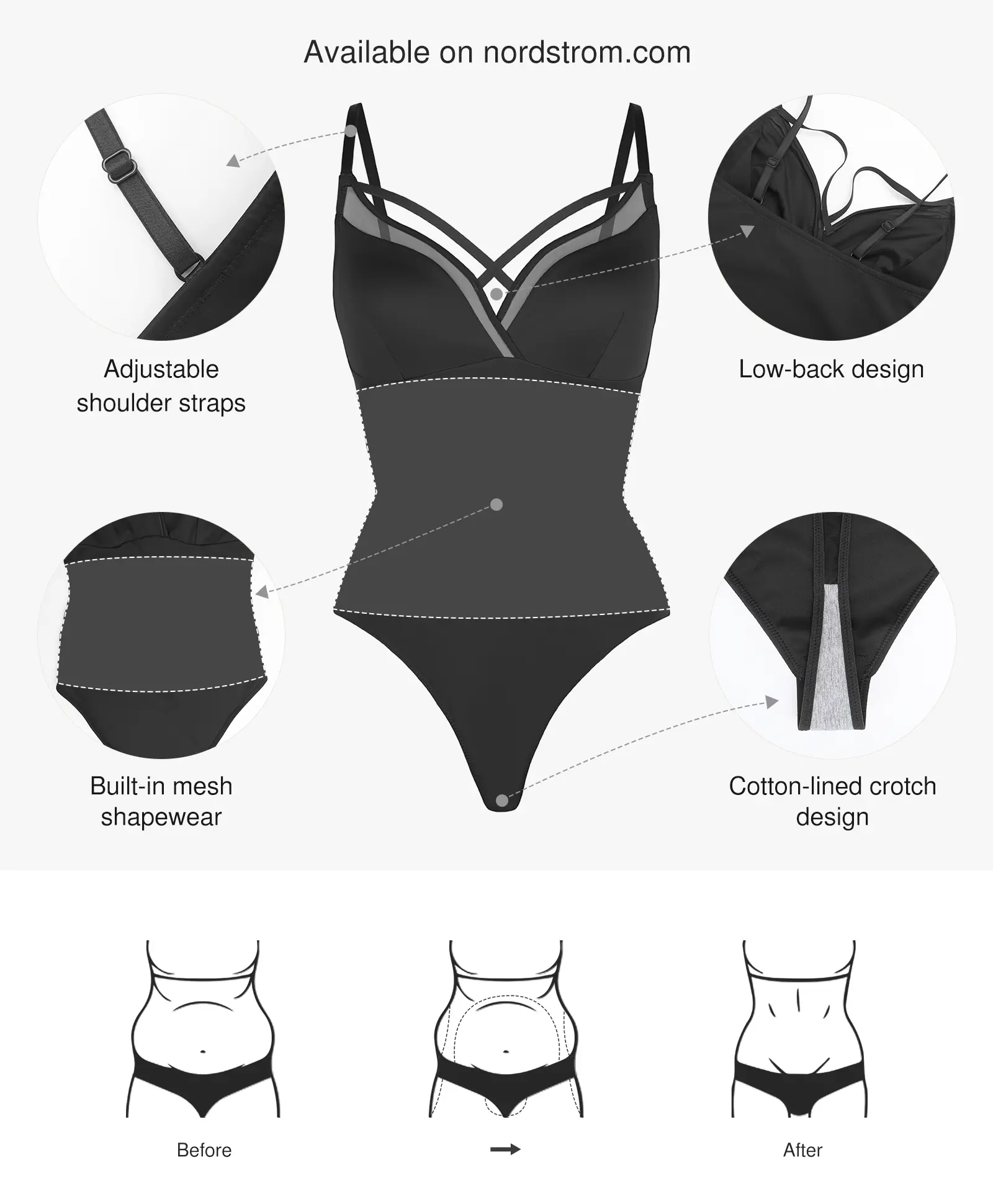·Shaping Effect: Designed to cinch the waist and tummy, with an outer layer of body-shaping mesh for a sculpted silhouette.