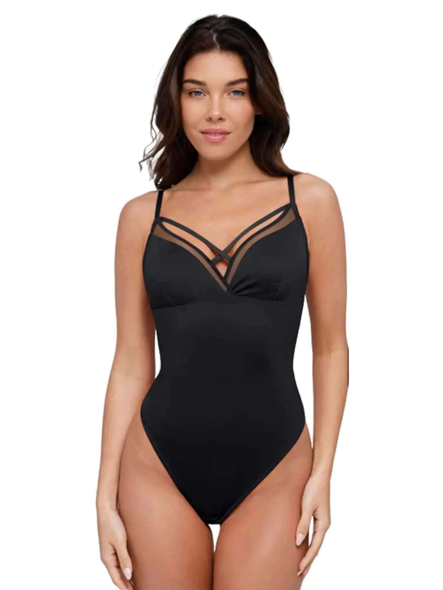 ·Elegant Mesh Design: Featuring crisscross hollow straps, the bodysuit showcases a layered, subtly alluring look.