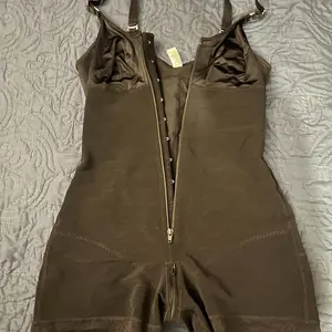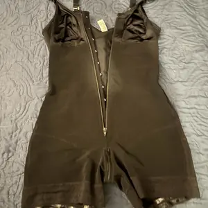 I love the material it's snug my body giving great compression to the abdominal, there's a row of hooks and a zipper to give you a smooth look. The opening in the middle is perfect for using the restroom. Non slip material around the thighs. I even look like I have a BBL. Ladies I highly recommend