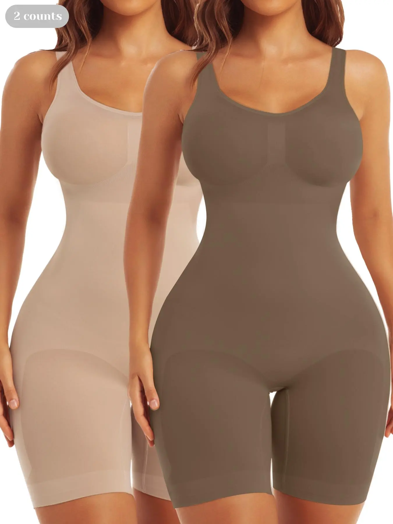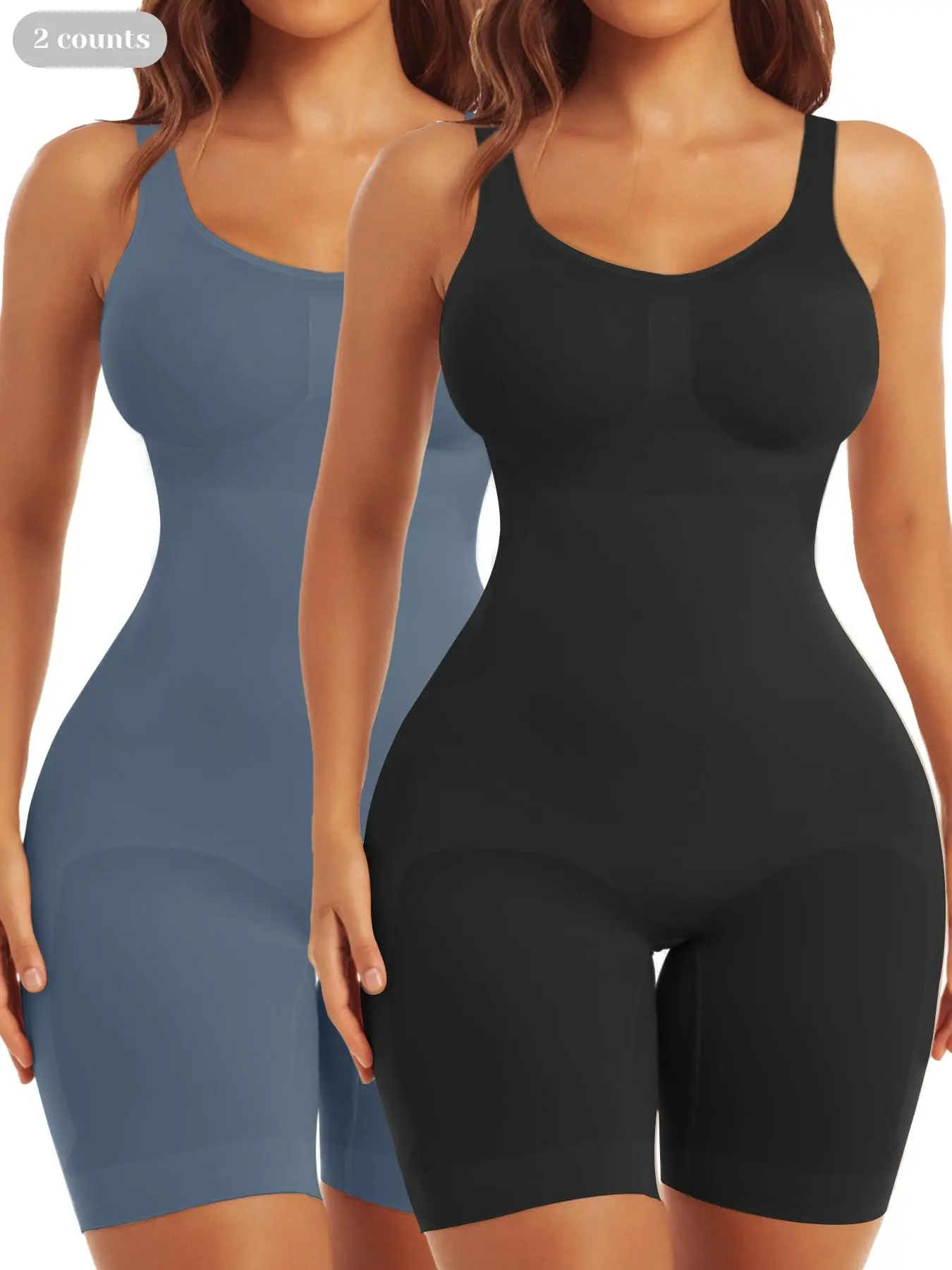 I absolutely love these black and blue shorts jumpsuits! They fit so perfectly and really help control my tummy, giving me a smooth and confident look. The material is comfortable and stretchy, and it looks so nice on me.