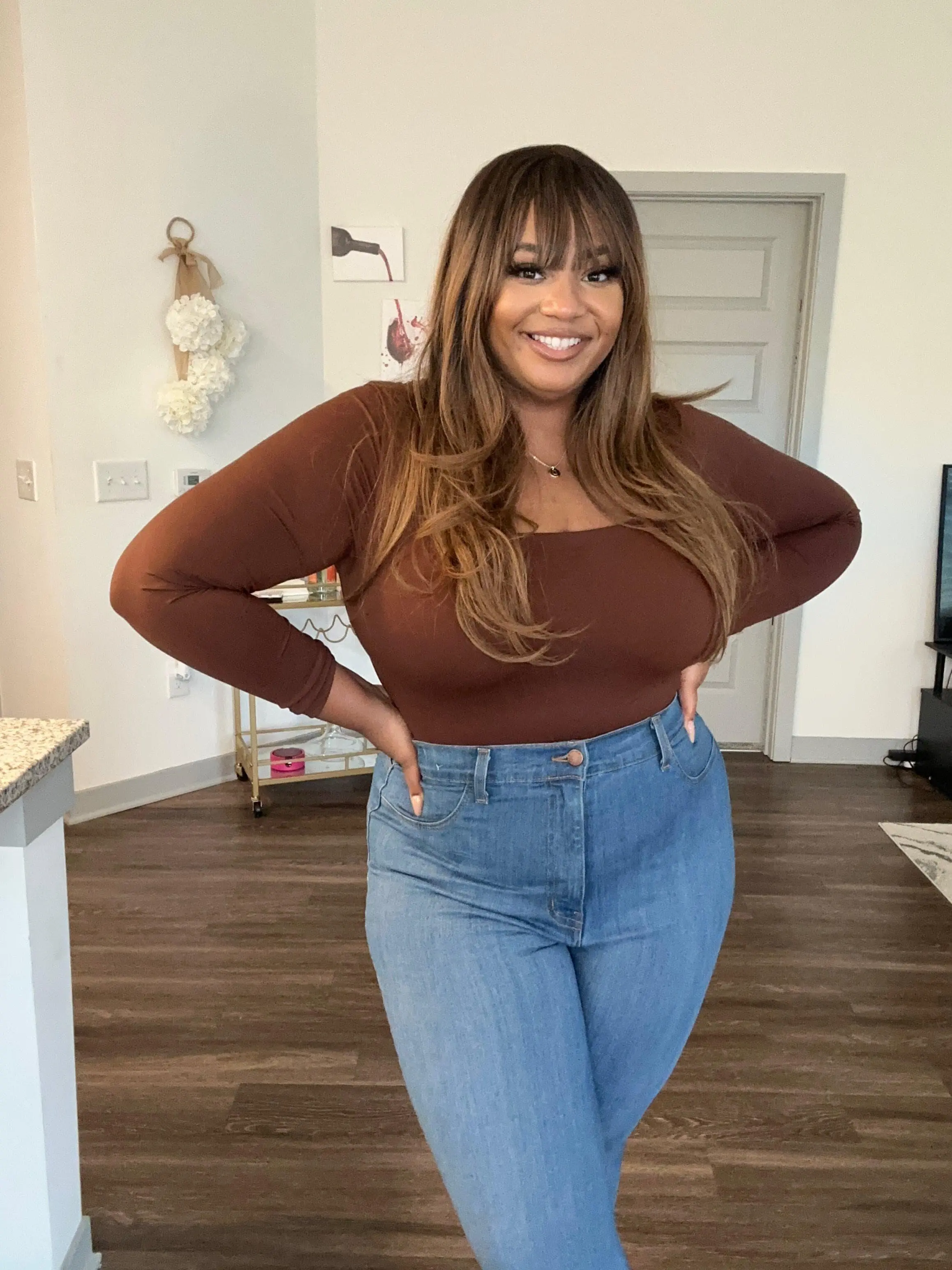 This Popilush Long Sleeve Square Neck Shapewear Bodysuit is simultaneously tight-fitting, functional, and stylish. It can be a great layered piece or worn as is with jeans, skirts, shorts, etc.