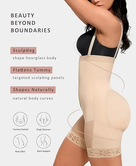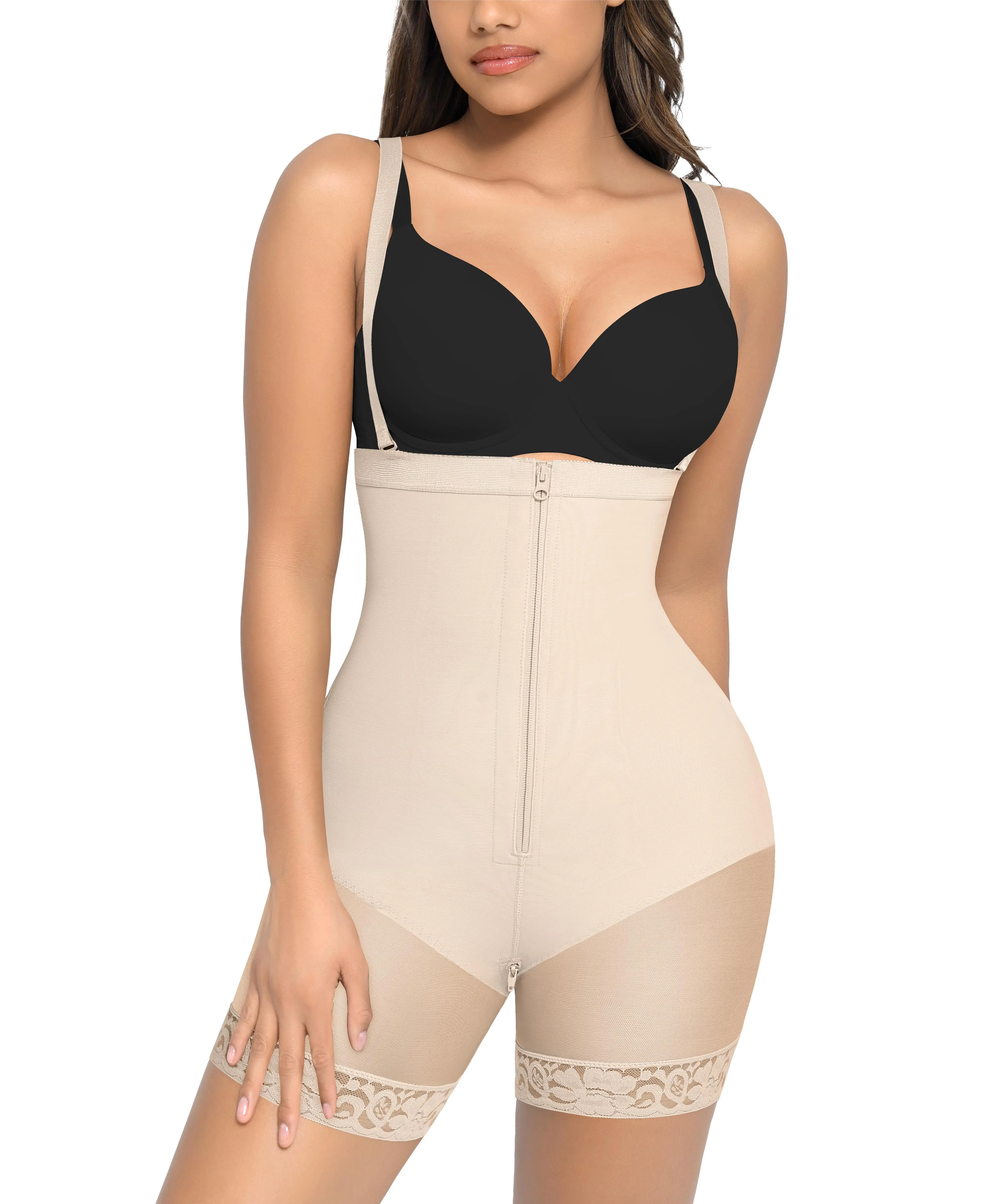 Featuring thin, seamless edges that conform to your body's curves without feeling tight around the crotch, our highly elastic shapewear includes rubber and two plastic bones on the waistband will not rolling down. The outer zipper closure with inner hooks makes it easy to put on and take off. Additionally, the two adjustable and detachable shoulder straps allow you to customize the fit, achieving a smoother silhouette.