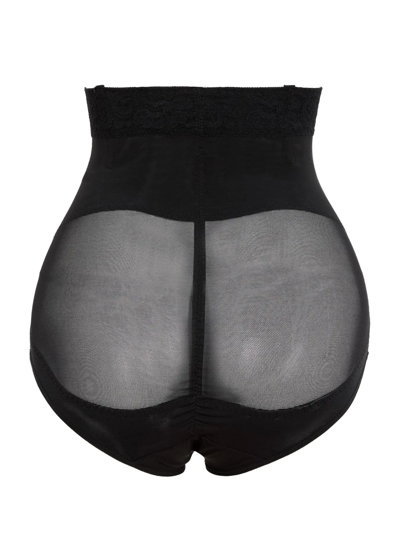 Women's High Waist Contrast Lace Shapewear Panty, Breathable Comfortable High Stretch Mesh Fabric Shaper, Tummy Control Butt Lifter, Ladies Shapewear Bottoms, Belly Control Underwear